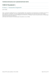 Verfahrenshinweise der Ausländerbehörde Berlin VAB E Russland 1 E.Russ.1. Russisches Sorgerecht (20.07.2005) Nach russischem Familienrecht ist es in Scheidungsfällen nicht vorgesehen, das Sorgerecht für ein eheliches Kind auf nur einen Elternteil zu übertragen. Auch der freiwillige Verzicht auf das Sorgerecht durch einen Elternteil ist nicht möglich. Dies bedeutet in der Praxis, dass die Einwilligung eines Elternteils zur ständigen Ausreise des gemeinsamen minderjährigen Kindes als ausreichend anzusehen ist. (Information des Deutschen Generalkonsulats Nowosibirsk vom Juli 2003). Dieses PDF wurde erstellt am: 28.12.2016 Seite 710 von 747