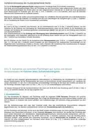 Verfahrenshinweise der Ausländerbehörde Berlin 1.4. Die Aufnahmezusage und die Ausnahme von der Passpflicht sind im Rahmen von organisierten Gruppeneinreisen ab Bekanntgabe sechs Monate gültig und erlöschen, wenn in diesem Zeitraum die Einreise nach Deutschland nicht erfolgt ist. 1.5. Es wird angestrebt, dass ein Teil der Personen selbsttätig in die Bundesrepublik Deutschland einreist; dies gilt insbesondere für Personen, die Bezüge zu Deutschland haben. Im übrigen wird angestrebt, die ausgewählten Personen grds. zentral über das Grenzdurchgangslager Friedland (Niedersächsisches Zentrum für Integration) oder Bramsche für die Dauer von 14 Tagen erstaufzunehmen und von dort aus vom BAMF zu verteilen. Ausgenommen sind unbegleitete Minderjährige und Schwerstkranke. 1.6. Personen, die eigenständig einreisen, werden vom BAMF auf der Grundlage des Königsteiner Schlüssels (s. auch nachfolgend 1.8.) bei der Verteilentscheidung berücksichtigt. Die Aufnahmezusage und die Ausnahme von der Passpflicht sind bei eigenständig einreisenden Personen ab Bekanntgabe drei Monate gültig und erlöschen, wenn in diesem Zeitraum die Einreise nach Deutschland nicht erfolgt ist. 1.7. Personen, die schwerstkrank oder minderjährig sind und ohne Familienangehörige aufgenommen werden, werden zwar in die Verteilung einbezogen; in solchen Fällen klärt das BAMF vor der Einreise unter Berücksichtigung der jew. Anzahl bereits erfolgter Aufnahmen, welches Land zur Aufnahme einer schwerstkranken Person und ihrer Familienangehörigen bzw. eines unbegleiteten Minderjährigen in der Lage ist. Die Personen werden von einem Vertreter des aufnehmenden Landes unmittelbar nach Ankunft vom Zielflughafen zum Zielort begleitet. Unbegleitete Minderjährige werden anschließend durch das zuständige Jugendamt am Zielort in Obhut genommen. 1.8. Die Verteilung der ausgewählten Personen erfolgt nach Maßgabe des Königsteiner Schlüssels (Berlin 5,07 % für 2013) und unter Berücksichtigung familiärer und sonstiger Bindungen nach Deutschland (s. dazu auch nachfolgend 2.). § 24 Abs. 3 bis 5 AufenthG findet Anwendung, d.h. u.a., dass aufgenommene Flüchtlinge keinen Anspruch darauf haben, sich an einem bestimmten Ort aufzuhalten, ein Widerspruch gegen die Zuweisungsentscheidung nicht stattfindet und eine Klage keine aufschiebende Wirkung hat. 2. Begünstigter Personenkreis Die Auswahl der Flüchtlinge durch das BAMF orientiert sich an: a) Humanitären Kriterien Besonders schutzbedürftige Kinder mit ihren Eltern bzw. Personensorgeberechtigten unter Wahrung der Familieneinheit, medizinischer Bedarf; hier liegt die Obergrenze bei 3 %, Frauen in prekären Lebenssituationen, Angehörige religiöser Minderheiten, sofern eine spezifische religionsbezogene Verfolgungssituation vorliegt. Voraussetzung für eine Aufnahme nach humanitären Kriterien ist eine bis zum 31.03.2013 erfolgte Registrierung beim UNHCR oder Caritas im Libanon. b ) Bezügen zu Deutschland wie Familiäre Bindungen, Voraufenthalte, Sprachkenntnisse, sonstige Bindungen nach Deutschland, insbesondere aufnahmebereite Institutionen syrischer religiöser Minderheiten. Dabei sollen vorrangig Personen berücksichtigt werden, für die Verpflichtungserklärungen abgegeben wurden oder die Bereitschaft erklärt wurde, bei ihrer Unterbringung und Lebensunterhaltssicherung einen Beitrag zu leisten. c) Fähigkeit, nach Konfliktende einen besonderen Beitrag zum Wiederaufbau des Landes zu leisten, etwa durch die Möglichkeit, vorhandene Qualifikationen während des Aufenthalts in Deutschland zu erhalten und auszubauen, wenn diese Mglichkeit am Fluchtort nicht besteht. Die Aufnahme setzt nicht die Erfüllung mehrerer Kriterien voraus. 3. Ausschlussgründe Ausgeschlossen sind grundsätzlich Personen, die wegen Delikten, die in Deutschland als vorsätzliche Straftat anzusehen sind, verurteilt worden sind oder bei denen tatsächliche Anhaltspunkte die Schlussfolgerung rechtfertigen, dass Verbindungen zu kriminellen Organisationen oder terroristischen Vereinigungen bestehen oder bestanden haben oder dass sie in sonstiger Weise Bestrebungen verfolgen oder unterstützen oder unterstützt haben, die gegen den Gedanken der Völkerverständigung verstoßen oder gegen das friedliche Zusammenleben der Völker gerichtet sind. Dieses PDF wurde erstellt am: 05.12.2016 Seite 188 von 747