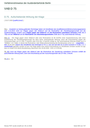 Verfahrenshinweise der Ausländerbehörde Berlin VAB D 75 D.75. Aufschiebende Wirkung der Klage ( 20.07.2009 QualRiLiUmsG ) 75.1. Zusätzlich zur bislang geltenden Rechtslage haben mit Inkrafttreten des Qualifikationsrichtlinienumsetzungsgesetzes zum 1.12.2013 nicht nur Klagen gegen den Widerruf und die Rücknahme der Flüchtlingseigenschaft und der Asylberechtigung, sondern auch Klagen gegen den Widerruf und die Rücknahme subsidiären Schutzes (Fälle des § 73b) und den Widerruf und die Rücknahme von Abschiebungsverboten (Fälle des § 73c) aufschiebende Wirkung. 75.2. 1. Die Klage gegen einen Widerruf oder eine Rücknahme (§ 48 VwVfG) einer Asylanerkennung oder einer Zuerkennung der Flüchtlingseigenschaft hat dann keine aufschiebende Wirkung, wenn die Entscheidung wegen der Voraussetzungen von § 3 Abs. 2 AsylVfG oder § 60 Abs. 8 AsylVfG erfolgt ist. Die aufschiebende Wirkung entfällt auch in "Altfällen", d.h. Fällen, in denen die Rücknahme- oder Widerrufsentscheidung des Bundesamtes schon vor ... weggefallen ... dem 28.08.2007 (Datum des Inkrafttreten des bisherigen § 75 S. 2, der sich seit dem 01.12.2013 nunmehr § 75 Abs. 2 S. 1 wiederfindet) getroffen worden ist bzw. die Klage gegen eine solche Entscheidung vor Inkrafttreten erhoben worden ist (vgl. dazu im Detail OVG Berlin-Brandenburg, Beschluss vom 29.06.2009 - OVG 12 S 63.08). 75. 2.2. Auch bei Klagen gegen den Widerruf oder die Rücknahme der Gewährung subsidiären Schutzes entfällt die aufschiebende Wirkung dann, wenn die Entscheidung auf den Ausschlussgründen des § 4 Abs. 2 beruht. 75. 2. 3. frei Dieses PDF wurde erstellt am: 05.12.2016 Seite 659 von 747