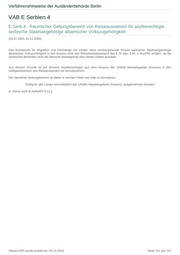 Verfahrenshinweise der Ausländerbehörde Berlin VAB E Serbien 4 E.Serb.4. Räumlicher Geltungsbereich von Reiseausweisen für asylberechtigte serbische Staatsangehörige albanischer Volkszugehörigkeit (20.07.2005; 01.11.2006) Das Bundesamt für Migration und Flüchtlinge hat erklärt, dass vorübergehende Reisen serbischer Staatsangehöriger albanischer Volkszuhörigkeit in den Kosovo nicht den Erlöschenstatbestand des § 72 Abs. 1 Nr. 1 AsylVfG erfüllen, da die serbischen Behörden nicht die faktische Staatsgewalt über dieses Gebiet ausüben. Aus diesem Grunde ist auf Wunsch Asylberechtigter aus dem Kosovo das UNMIK-Mandatsgebiet (Kosovo) in den Gültigkeitsbereich des Reiseausweises mit einzubeziehen. Der räumliche Geltungsbereich ist daher in solchen Fällen wie folgt zu formulieren: "Gültig für alle Länder einschließlich des UNMIK-Mandatsgebiets (Kosovo), ausgenommen Serbien" (s. hierzu auch B.AufenthV.5-11.). Dieses PDF wurde erstellt am: 05.12.2016 Seite 721 von 747