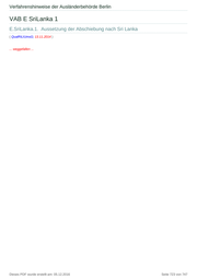 Verfahrenshinweise der Ausländerbehörde Berlin VAB E SriLanka 1 E.SriLanka.1. Aussetzung der Abschiebung nach Sri Lanka ( QualRiLIUmsG; 13.11.2014 ) ... weggefallen ... Dieses PDF wurde erstellt am: 05.12.2016 Seite 723 von 747