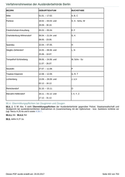 Verfahrenshinweise der Ausländerbehörde Berlin BEZIRK GEBURTSDATUM BUCHSTABE Mitte 01.01. – 17.02. A, B, C Pankow 18.02. – 04.03. und D, S - Schu, W 29.09. - 30.10. Friedrichshain-Kreuzberg 05.03. – 05.04. E, F Charlottenburg-Wilmersdorf 06.04. – 21.04. und G, K 08.05. - 23.05. Spandau 22.04. – 07.05. H Steglitz-Zehlendorf 24.05. – 08.06. und L, N 25.06. - 10.07. Tempelhof-Schöneberg 09.06. – 24.06. und M, Schv - Sz 11.07. - 26.07. Neukölln 27.07. – 11.08. P Treptow-Köpenick 12.08. – 12.09. Q, R, T Lichtenberg 13.09. – 28.09. und J, U,V 02.12. - 16.12. Reinickendorf 31.10. – 15.11. O Marzahn-Hellersdorf 16.11. – 01.12. und I, X, Y, Z 17.12. - 31.12. 90.4. Übermittlungspflichten bei Zeuginnen und Zeugen 90.4. 0. § 90 Abs. 5 sieht Übermittlungspflichten der Ausländerbehörde gegenüber Polizei, Staatsanwaltschaft und Strafgericht bei ausländerrechtlichen Maßnahmen im Zusammenhang mit der Opferschutz - bzw. Sanktions richtlinie vor (vgl. hierzu A.25.4a und b sowie A.59.7.. 90.4.1. bis 90.4.3. frei 90.5. siehe A.27.1a. Dieses PDF wurde erstellt am: 20.03.2017 Seite 432 von 753