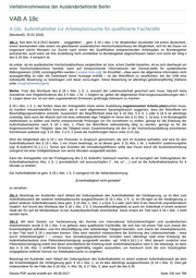 Verfahrenshinweise der Ausländerbehörde Berlin VAB A 19 Inhaltsverzeichnis A.19. Niederlassungserlaubnis für Hochqualifizierte .............................................. 160 19.0. Grundsätzliches ..................................................................................... 160 19.1. Erteilungsvoraussetzungen/Zustimmung der obersten Landesbehörde ...... 160 19.2. Regelbeispiele für Hochqualifizierte ....................................................... 160 19.2.1. Wissenschaftler ............................................................................ 160 19.2.2. Lehrpersonal ................................................................................. 160 A.19. Niederlassungserlaubnis für Hochqualifizierte (AuslBeschR; 16.01.2017) 19.0. Grundsätzliches Bei dieser NE kommt der allgemein für Niederlassungserlaubnisse geltende § 9 Abs. 1 zur Anwendung. Erforderlich ist in jedem Fall ein konkretes Arbeitsplatzangebot (vgl. § 18 Abs. 5). 19.1. Erteilungsvoraussetzungen/Zustimmung der obersten Landesbehörde 19.1.1. Liegt kein Fall des § 19 Abs. 2 vor, so ist immer zu prüfen, ob der Betroffene aus sonstigen Gründen als hoch qualifiziert zu betrachten ist – etwa weil er über eine Qualifikation verfügt, die der des Abs. 2 Nr. 1 oder 2 entspricht. Ist dies anzunehmen, kommt die Erteilung der NE dennoch nur ausnahmsweise nach pflichtgemäßem Ermessen in Betracht (vgl. Wortlaut des § 19 Abs. 1 S. 1). Mit Änderung der BeschV zum 01.07.2013 ist das Zustimmungserfordernis der Bundesagentur für Arbeit zur Erteilung der NE nach § 19 insgesamt entfallen, vgl. § 2 Abs. 1 Nr. 1 BeschV. 19.1.2. Diese Regelung bietet der Landesregierung (d.h. für Berlin den Senat als Kollegialorgan) die Möglichkeit, die Erteilung einer Niederlassungserlaubnis für Hochqualifizierte von der Zustimmung der obersten Landesbehörde (d.h. für Berlin die Senatsverwaltung für Inneres und Sport) abhängig zu machen. Der Senat hat von dieser Möglichkeit bis dato keinen Gebrauch gemacht. 19.2. Regelbeispiele für Hochqualifizierte 19.2.0. Zur besseren Eingrenzung, welche Personen insbesondere als hoch qualifizierte Arbeitskräfte einzuordnen sind, enthält Abs. 2 Regelbeispiele. Wenn ein Antragsteller durch den Sachbearbeiter zweifelsfrei einer der in § 19 Abs. 2 Nr. 1 bis 2 aufgezählten Gruppen zugeordnet werden kann, ist auch davon auszugehen, dass der antragstellende Ausländer ebenso die Voraussetzungen des § 19 Abs. 1 erfüllt. ... weggefallen ... Aus Gründen der Verwaltungseffizienz ist in den Fällen des § 19 Abs. 2 Nr. 1 und 2 die Wissenschaftsverwaltung gem. Nr. 19.2.1. AufenthG-VwV nur um Stellungnahme zu bitten, wenn Zweifel an den Voraussetzungen des § 19 Abs. 2 Nr. 1 oder 2 bestehen. Im Übrigen sind die gesetzlichen Voraussetzungen in eigener Zuständigkeit zu prüfen. 19.2.1. Wissenschaftler Von einer besonderen wissenschaftlichen Qualifikation im Sinne des § 19 Abs. 2 Nr. 1 sollte immer dann ausgegangen werden, wenn der Ausländer entweder über eine überdurchschnittlich hohe Qualifikation oder über Kenntnisse in einem sehr speziellen Fachgebiet von überdurchschnittlich hoher Bedeutung verfügt. Dies ist nach Nr. 19.2.1 AufenthG-VwV regelmäßig der Fall, wenn ein Forschungsgebiet identifiziert werden kann, in dem der Wissenschaftler sich eine besondere Expertise angeeignet hat. In jedem Fall ist zumindest Voraussetzung, dass er regelmäßig in international erscheinenden Fachzeitschriften publiziert. 19.2.2. Lehrpersonal Die herausragende Funktion bei Lehrpersonen nach Nr. 2 ist bei Lehrstuhlinhabern und Institutsdirektoren gegeben. Die herausgehobene Funktion bei wissenschaftlichen Mitarbeitern ist nach Nr. 19.2.2 AufenthG-VwV gegeben, wenn sie eigenständig und verantwortlich wissenschaftliche Projekt- oder Arbeitsgruppen leiten. Dieses PDF wurde erstellt am: 08.08.2017 Seite 160 von 786