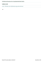 Verfahrenshinweise der Ausländerbehörde Berlin VAB A 63 A.63. Pflichten der Beförderungsunternehmer frei Dieses PDF wurde erstellt am: 08.08.2017 Seite 408 von 786