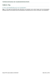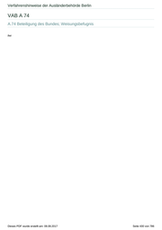 Verfahrenshinweise der Ausländerbehörde Berlin VAB A 74 A.74 Beteiligung des Bundes; Weisungsbefugnis frei Dieses PDF wurde erstellt am: 08.08.2017 Seite 430 von 786