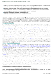 Verfahrenshinweise der Ausländerbehörde Berlin Studienvorbereitende Sprachkurse Die Erteilung einer Aufenthaltserlaubnis zum Besuch eines studienvorbereitenden Sprachkurses setzt voraus, dass der Antragsteller die für ausländische Studienbewerber geltenden Voraussetzungen nach § 16 Abs. 7 erfüllt und der Intensivsprachkurs zur Vorbereitung eines anerkannten Nachweises ausreichender Sprachkenntnisse für den Hochschulbesuch ausgerichtet ist, vgl. Nr. 16.1.2.1. VwV-AufenthG. Keine Studienvorbereitung in diesem Sinne liegt vor, bei einem Selbststudium, der Absolvierung von online-basierten Sprachprogrammen oder dem Besuch von anderen – nicht ausdrücklich auf den Erwerb ausreichender Sprachkenntnisse für den Hochschulbesuch gerichteter – Sprachkursen. Allein der Umstand, dass ein Spracherwerb sich auch für den Hochschulbesuch als nützlich erweisen könnte, reicht für die Annahme einer Studienvorbereitung nicht aus. Zum Sprachkurs zum Erlernen einer Fremdsprache vgl. vorheriger „Merke“-Satz unter A.16.1.2. Soweit gemäß VAB A.16b.4. ein Zweckwechsel von einem Sprachaufenthalt nach § 16b Abs. 1 ohne Durchführung des Visumverfahrens direkt in einen Aufenthalt zur Studienvorbereitung nach § 16 Abs. 1 möglich ist, wird hinsichtlich der zulässigen Dauer der Studienvorbereitung das Ermessen zur Wahrung des Gleichbehandlungsgrundsatzes regelmäßig dahingehend ausgeübt, dass diese Zeiten des Sprachaufenthalts auf die Regeldauer der Studienvorbereitung von 2 Jahren angerechnet werden. ...weggefallen... 16.1.4. Der Nachweis der Sprachkenntnisse wird zur Vermeidung unnötiger Doppelprüfungen von uns grundsätzlich nicht verlangt, da die Berliner Hochschulen einen solchen Nachweis bereits zur Bedingung für die Zulassung machen bzw. diese Sprachkenntnisse im Rahmen einer studienvorbereitenden Maßnahme zunächst erworben werden sollen. Abs. 1 S. 4 ist damit praktisch nicht von Bedeutung. 16.2. Gültigkeitsdauer der Aufenthaltserlaubnis 16.2.1 . Die Aufenthaltserlaubnis wird zum Zweck des Studiums und auch den studienvorbereitenden Maßnahmen (Pflichtpraktikum, Sprachkurs und Studienkolleg) i.S.v. Nr. 16.1.1.5 der AufenthG-VwV für mindestens ein Jahr erteilt. Bei der Ersterteilung und Verlängerung einer Aufenthaltserlaubnis ist eine Gültigkeit für weniger aber auch für mehr als zwei Jahre möglich. (vgl. § 16 Abs. 2 S. 1, Nr. 16.1.1.5. der AufenthG-VwV ). Zudem ist § 59 Abs. 4a AufenthV zu beachten und in allen Fällen des § 16 Abs. 1 stets ergänzend „Student“ einzutragen. 16.2.2. Steht das Studium in Zusammenhang mit einem Unions- oder multilateralen Programm mit Mobilitätsmaßnahmen oder einer Vereinbarung zwischen zwei oder mehr Hochschuleinrichtungen, ist die Aufenthaltserlaubnis darüber mit der Nebenbestimmung „Studium im Rahmen des Programms…“ unter Benennung des Programms oder der Vereinbarung zu versehen (z.B. „Studium im Rahmen des Programms IES Abroad“. Das BAMF als nationale Kontaktstelle nach § 91d für die REST-Richtlinie führt eine Datenbank zu den entsprechenden Programmen und Vereinbarungen. Eine Aufenthaltserlaubnis für Studierende, die an einem solchen Programm teilnehmen oder auf Grund einer Vereinbarung ihrer Hochschulen hier studieren, wird grundsätzlich für die gesamte Studiendauer ausgestellt. Ist das Programm oder die Vereinbarung von Beginn an auf einen kürzeren oder längeren Zeitraum als zwei Jahre zugeschnitten, soll die Aufenthaltserlaubnis für den konkreten Zeitraum erteilt werden. 16.2.3. frei 16.2.4. An die Stelle der bisherigen Ermessensentscheidung tritt mit Inkrafttreten des Richtlinienumsetzungsgesetzes 2017 zum 01.08.2017 eine gebundene Entscheidung über die Verlängerung. Voraussetzung ist einerseits, dass noch kein Abschluss erworben wurde und andererseits, dass ein Studienabschluss noch in einem angemessenen Zeitraum erfolgen kann. Zu letzterem Punkt ist eine umfassende Abwägung aller Umstände des Einzelfalls vorzunehmen. Ergibt die Abwägung, ggf. unter Einbeziehung einer Studienprognose (vgl. 16.2.5.), dass keine Aussicht auf einen Studienabschluss in angemessener Zeit besteht, ist die Verlängerung zwingend zu versagen. Die in § 20c Abs. 1 und 2 normierten allgemeinen Ablehnungsgründe sind gleichfalls vor Erteilung oder Verlängerung zu prüfen, wobei insbesondere § 20 c Abs. 2 Nr. 5 – konkrete Anhaltspunkte, dass das Studium nicht Hauptzweck des Aufenthalts ist – erhöhte Aufmerksamkeit zu widmen ist. Die Aufenthaltserlaubnis zur Fortsetzung des Studiums ist grundsätzlich nur zu verlängern, wenn ausreichende Studienfortschritte vorliegen. und der Abschluss des Studiums in einem angemessenen Zeitraum erreicht werden kann (vgl. Nr. 16.1.1.6. der AufenthG-VwV). Ausreichende Studienfortschritte liegen regelmäßig vor, solange der Ausländer die durchschnittliche Studiendauer in dem jeweiligen Studiengang um nicht mehr als drei Bonus-Semester überschreitet (vgl. Nr. 16.1.1.7. der AufenthG-VwV). Die Hochschule teilt die durchschnittliche Fachstudiendauer in den einzelnen Studiengängen der Ausländerbehörde auf Anfrage mit. Bei der Berechnung der Fachsemesterzahl bleiben Zeiten der Studienvorbereitung (z.B. Sprachkurse, Studienkollegs, Praktika) außer Betracht. Dieses PDF wurde erstellt am: 30.04.2018 Seite 122 von 796