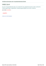 Verfahrenshinweise der Ausländerbehörde Berlin VAB E Lib 4 E.Lib.4 Anwendbarkeit des § 5 AufenthV für palästinensische oder kurdische Volkszugehörige ungeklärter Staatsangehörigkeit aus dem Libanon (15.12.2015; 21.06.2016 ) ...weggefallen... E-Mail an die VAB-Redaktion Dieses PDF wurde erstellt am: 30.04.2018 Seite 750 von 796