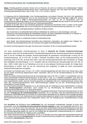 Verfahrenshinweise der Ausländerbehörde Berlin Merke: In den Fällen der kurzfristigen Mobilität (§§ 16a, 19c und 20a) muss ein ausreichender Krankenversicherungsschutz nicht geprüft werden, da eine Versagung nicht in Betracht kommt (vgl. etwa A.19c.4. ). Auch bei Aufenthalten zum Zweck bestimmter Beschäftigungen, für die durch die BeschV eine zeitliche Begrenzung bestimmt ist, bedarf es keiner privaten Krankenversicherung, die die gesetzlichen Voraussetzungen in Bezug auf die Krankenversicherung gem. § 257 Abs. 2a SGB V vollumfänglich erfüllt. Dies gilt insbesondere für Au-pair-Beschäftigungen § 12 BeschV), Haushaltshilfen (§ 15c BeschV), Hausangestellte von Entsandten (§ 13 BeschV), Sprachlehrer und Spezialitätenköche (§ 11 BeschV) sowie bei internationalem Personalaustausch (§ 10 BeschV) und Werkverträgen gem. § 29 BeschV. Auch Personen, die eine Aufenthaltserlaubnis zum Zwecke der Aus- und Weiterbildung erhalten (§§ 8 und 15 BeschV), der ICT- Karte und Mobilen ICT- Karte (§§ 19 b und d) die bestimmten Berufsgruppen nach § 7 BeschV angehören, sowie die Fälle des §§ 6, 9 – 15 BeschV fallen hierunter. In den Fällen der §§ 3 – 5 und 8 BeschV ist einzelfallbezogen zu prüfen, ob der Aufenthalt auf einen bestimmten Zeitraum angelegt ist. Für Ehegatten und Kinder, die einen Titel nach dem 6. Abschnitt aus dem Aufenthalt des Stammberechtigten herleiten, gilt Entsprechendes. Bei der Erteilung einer Aufenthaltserlaubnis aus humanitären Gründen zum vorübergehenden Aufenthalt (§§ 25 Abs. 4 S. 1 bzw. 4 a) bzw. der Verlängerung eines Schengenvisums (§ 6 Abs. 3 bzw. Art. 33 Visakodex) ist gleichfalls davon auszugehen, dass der Aufenthalt auf einen bestimmten Zeitraum begrenzt ist. Wird die Erteilung oder Verlängerung einer Aufenthaltserlaubnis für eine freiberufliche Tätigkeit (§ 21 Abs. 5) beantragt, kommt es für die Anforderungen an die Krankenversicherung darauf an, ob in dem jeweiligen Einzelfall die Prognose gerechtfertigt ist, dass der Aufenthalt auf Dauer angelegt ist. Nach unseren Erfahrungen ist im Zweifel, insbesondere bei einer künstlerischen oder sprachlehrenden Tätigkeit, von einer begrenzten Aufenthaltsdauer auszugehen. Merke: Bei Studierenden wird ein Nachweis ausreichenden Krankenversicherungsschutzes verlangt. Studierende können sich von der Versicherungspflicht befreien lassen, wenn sie über eine anderweitige Krankenversicherung verfügen. Diese Befreiung wird von den gesetzlichen Krankenkassen (GKV) ausgesprochen und ist unwiderruflich. Die GKV prüfen aber nicht Art und Umfang der vorgelegten anderweitigen Krankenversicherung. Daher ist bei Studierenden unabhängig vom Alter auch bei vorliegender Immatrikulationsbescheinigung ein Nachweis über einen ausreichenden Versicherungsschutz zu verlangen, der allerdings nur geringeren Anforderungen entsprechen muss (s.o.). Im Einreiseverfahren kann bei der Zustimmung zur Erteilung eines Visums in jedem Fall der Abschluss einer Reisekrankenversicherung für die Einreise und die Dauer der Visumgültigkeit genügen, wenn auch durch hiesige Referenzpersonen /-unternehmen eine Krankenversicherung der o.g. Art nicht abgeschlossen werden kann und dies nachvollziehbar erklärt wird. In diesem Falle ist aber ein konkretes Angebot einer Krankenversicherung mit Nennung des zu erwartenden Beitragssatzes für die Zeit nach Visumsgültigkeit vorzulegen (ebenfalls mit einem von der Ausländerbehörde zur Verfügung gestellten Formular möglich). Zur ersten Erteilung des Aufenthaltstitels im Inland gelten dann die o.g. Anforderungen, es muss also noch während der Gültigkeit des Visums ein Vertrag abgeschlossen werden, der einen ausreichenden Krankenversicherungsschutz gewährt. Die Aufenthaltserlaubnis wird nicht erstmalig erteilt, ohne dass ein ausreichender Krankenversicherungsschutz nachgewiesen ist und damit feststeht, dass die allgemeine Erteilungsvoraussetzung des § 5 Abs. 1 Nr. 1 i.V.m. § 2 Abs. 3 S. 1 vorliegt. Scheitert die Erteilung allein hieran und macht der Antragssteller geltend, dass eine Versicherung seiner Wahl den Versicherungsabschluss von einem gesicherten Aufenthaltsrecht in Deutschland abhängig macht, kann die Erteilung gem. § 38 VwVfG schriftlich zugesichert werden. Bei beabsichtigten Kurzaufenthalten (§ 6 Abs. 1 Nr. 2 bzw. Art. 24 Visakodex) kann nach Nr. 2.3.5.2. AufenthG- VwV vermutet werden, dass der Ausländer das umfangreiche Leistungsspektrum, das von einer gesetzlichen Krankenversicherung abgedeckt wird, erkennbar nicht in Anspruch nehmen wird, so dass in diesen Fällen eine Krankenversicherung auch dann als ausreichend betrachtet werden kann, wenn sie nicht dem Leistungskatalog der gesetzlichen Krankenversicherung entspricht. Voraussetzung der Erteilung eines Schengen-Visums zum kurzfristigen Aufenthalt von bis zu 90 Tagen ist nach Kapitel V der Gemeinsamen Konsularischen Instruktion an die diplomatischen Missionen und die konsularischen Vertretungen, die von Berufskonsularbeamten geleitet werden (GKI ABl. C 326 vom 22. Dezember 2005, S. 1 bis 149) grundsätzlich der Nachweis einer ausreichenden Reisekrankenversicherung auch für Repatriierungs-, ärztliche Nothilfe- und Notaufnahmeleistungen im Krankenhaus für das gesamte Schengen- Gebiet. Dies gilt auch für Verlängerungen eines solchen Visums gem. § 6 Abs. 3 S. 1 bzw. Art. 33 Visakodex. 2.3.1.13. Leistungen Dritter Ein Dritter in diesem Sinne ist jede Person, die bei der Bedarfs- und Einkommensberechnung nicht als Mitglied der aufenthaltsrechtlichen Bedarfsgemeinschaft anzusehen ist. Dies sind zunächst alle Personen, die mit dem Ausländer, dessen Lebensunterhaltssicherung zu prüfen ist, nicht in häuslicher Lebensgemeinschaft leben, und zwar selbst dann, wenn sie mit dem Ausländer verwandt oder diesem gegenüber unterhaltsverpflichtet sind. Dritte sind auch Personen, die zwar mit dem Ausländer in einer Haushaltsgemeinschaft leben, aber nicht in die aufenthaltsrechtliche Bedarfsberechnung einbezogen 