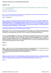 Verfahrenshinweise der Ausländerbehörde Berlin VAB A 72a A.72a. Abgleich von Visumantragsdaten zu Sicherheitszwecken (04.08.2013) 72a.0. Normadressat sind die deutschen Auslandsvertretungen. Mit dem § 72a wird ein neues Verfahren zum Abgleich der Visumantragsdaten mit den Erkenntnissen der Sicherheitsbehörden zu Personen mit Verbindung zum internationalen Terrorismus eingeführt. Damit soll auch bei Staatsangehörigen und Personengruppen, bei denen eine Visumpflicht besteht und deren Visumanträge nicht nach 73 Absatz 1 des Aufenthaltsgesetzes einer Prüfung durch die Sicherheitsbehörden unterliegen, eine Rückmeldung an die Auslandsvertretungen ermöglicht werden, wenn Personen aus dem terroristischen Umfeld beabsichtigen, nach Deutschland einzureisen. Hierzu übermitteln die Auslandsvertretungen die Visumantragsdaten an eine im Bundesverwaltungsamt einzurichtende besondere Organisationseinheit. Das Bundeskriminalamt übermittelt seinerseits bestimmte Daten aus der Antiterrordatei. Dies bedeutet auch, dass eine manuelle Abfrage des AZR/SIS/Inpol-Ergebnisses seit dem 01.06.2013 (Inkrafttreten des VWDG, vgl. auch A.6.s.3.) für die Erteilung eines Visums nicht mehr ausreichend ist. 72a.1.1. bis 72a.9.3. frei E-Mail an die VAB-Redaktion Dieses PDF wurde erstellt am: 11.12.2017 Seite 436 von 794