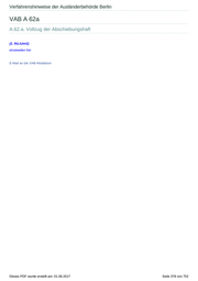 Verfahrenshinweise der Ausländerbehörde Berlin VAB A 62a A.62.a. Vollzug der Abschiebungshaft (2. RiLiUmG) einstweilen frei E-Mail an die VAB-Redaktion Dieses PDF wurde erstellt am: 01.06.2017 Seite 378 von 752