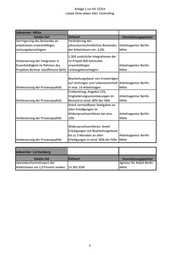 Anlage 2 zur KA 12324 Lokale Ziele neben KdU- Controlling Jobcenter: Mitte lokales Ziel Zielwert Vereinbarungspartner Verringerung des Bestandes an Veränderung des arbeitslosen erwerbsfähigen jahresdurchschnittlichen Bestandes Arbeitsagentur Berllin Leistungsberechtigten der Arbeitslosen um -2,0% Mitte 1.304 zusätzliche Integrationen der Verbesserung der Integration in im Projekt BJO betreuten Erwerbstätigkeit im Rahmen des erwerbsfähigen Arbeitsagentur Berllin Projektes Berliner Joboffensive (BJO) Leistungsberechtigten Mitte Bearbeitungsdauer von Erstanträgen auf Leistungen zum Lebensunterhalt Arbeitsagentur Berllin Verbesserung der Prozessqualität in max. 14 Arbeitstagen Mitte Erstberatung, Angebot U25, Eingliederungsvereinbarungen im Arbeitsagentur Berllin Verbesserung der Prozessqualität Bestand in mind. 80% der Fälle Mitte Anteil vermeidbarer Stattgaben an allen Erledigungen im Widerspruchsverfahren bei amx. Arbeitsagentur Berllin Verbesserung der Prozessqualität 10% Mitte Widerspruchsverfahren: Anteil Erledigungen mit Bearbeitungsdauer bis zu 3 Monaten an allen Arbeitsagentur Berllin Verbesserung der Prozessqualität Erledigungen in mind. 90% der Fälle Mitte Jobcenter: Lichtenberg lokales Ziel Zielwert Vereinbarungspartner Jahresdurchschnittswert der Agentur für Arbeit Berlin Arbeitslosen um 2,0 Prozent senken 15.382 JDW Mitte 5