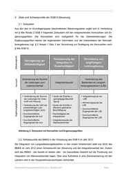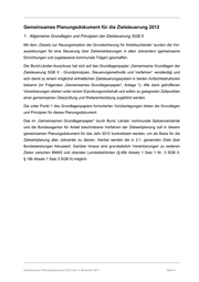 Gemeinsames Planungsdokument für die Zielsteuerung 2012 1. Allgemeine Grundlagen und Prinzipien der Zielsteuerung SGB II Mit dem „Gesetz zur Neuorganisation der Grundsicherung für Arbeitsuchende“ wurden die Vor- aussetzungen für eine Steuerung über Zielvereinbarungen in allen Jobcentern (gemeinsame Einrichtungen und zugelassene kommunale Träger) geschaffen. Der Bund-Länder-Ausschuss hat sich auf das Grundlagenpapier „Gemeinsame Grundlagen der Zielsteuerung SGB II - Grundprinzipien, Steuerungsmethodik und Verfahren“ verständigt und sich damit zu einem möglichst einheitlichen Zielsteuerungssystem in beiden Aufsichtsstrukturen bekannt (im Folgenden „Gemeinsames Grundlagenpapier“, Anlage 1). Alle darin getroffenen Vereinbarungen stehen unter einem Erprobungsvorbehalt und sollen zu geeigneten Zeitpunkten einer gemeinsamen Überprüfung und Weiterentwicklung zugeführt werden. Die unter Punkt 1 des Grundlagenpapiers formulierten Vorüberlegungen bilden die Grundlagen und Prinzipien für dieses Planungsdokument. Das im „Gemeinsamen Grundlagenpapier“ durch Bund, Länder, kommunale Spitzenverbände und die Bundesagentur für Arbeit beschriebene Verfahren der Zielwertplanung soll in diesem gemeinsamen Planungsdokument für das Jahr 2012 konkretisiert werden, um als Basis für die Zielwertplanung aller Jobcenter zu dienen. Hierbei werden die in 2.1. genannten Ziele über Bundesleistungen fokussiert. Darüber hinaus sind grundsätzlich Vereinbarungen zu weiteren Zielen zwischen BMAS und obersten Landesbehörden (§ 48b Absatz 1 Satz 1 Nr. 3 SGB II; § 18b Absatz 1 Satz 3 SGB II) möglich. Gemeinsames Planungsdokument 2012 vom 3. November 2011 Seite 4