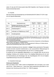 Darüber hinaus hat der Gesetzgeber festgelegt, dass auf der Grundlage der aktuellen Einkom- mens- und Verbrauchsstichprobe die Regelbedarfe jeweils neu zu ermitteln sind. Die maßgebenden Regelbedarfe im SGB II für das Jahr 2012 sind im Bundesgesetzblatt vom 26.10.2011, BGBl I S. 2093, bekannt gegeben worden. Instrumentenreform Die Auswirkungen der Instrumentenreform bleiben in diesem Planungsdokument unberücksich- tigt, da das Gesetzgebungsverfahren noch nicht abgeschlossen ist. Gemeinsames Planungsdokument 2012 vom 3. November 2011 Seite 12