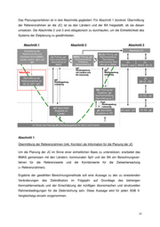 Das Planungsverfahren ist in drei Abschnitte gegliedert. Für Abschnitt 1 (konkret: Übermittlung der Referenzrahmen an die JC) ist es den Ländern und der BA freigestellt, ob sie diesen umsetzen. Die Abschnitte 2 und 3 sind obligatorisch zu durchlaufen, um die Einheitlichkeit des Systems der Zielplanung zu gewährleisten. Abschnitt 1 Abschnitt 2 Abschnitt 3 Erarbeitung der Abschluss ZV Referenzwerte und BA (Z): Prüfung, ggf. Korridore durch BMAS, Lä: Prüfung, ggf. BMAS: Prüfung, ggf. Nachverhandlung; Länder, komm. SpV und Nachverhandlung; Nachverhandlung, Übermittlung BA Übermittlung an Einleitung aufsummierter Wert ZV ZV BMAS Zielvereinbarung aller gE an BMAS BMAS- Land BMAS- BA (Z) ggf. Rückkoppelung ggf. fakultativ mit Ländern und Rückkoppelung BA notwendig notwendig Übermittlung der ZV ggf. Referenzrahmen an Rückkoppelung BA (Z) - RD die JC (zkT / gE) notwendig RD: Prüfung der Angebote, ggf. Nachverhandlung ZV RD - AA Übermittlung an Z ggf. Rückkoppelung notwendig zkT übermitteln Angebote an gE übermitteln ZV Land - zkT ZV AA - gE Länder Angebote an RD JC führen die Planung der Zielwertangebote für Ziel 2 und 3 durch Abschnitt 1: Übermittlung der Referenzrahmen (inkl. Korridor) als Information für die Planung der JC Um die Planung der JC im Sinne einer einheitlichen Basis zu unterstützen, erarbeitet das BMAS gemeinsam mit den Ländern, kommunalen SpV und der BA ein Berechnungsver- fahren für die Referenzwerte und die Korridorwerte für die Zielwerterwartung (= Referenzrahmen). Ergebnis der gewählten Berechnungsmethode soll eine Aussage zu den zu erwartenden Veränderungen des Zielindikators im Folgejahr auf Grundlage des bisherigen Kennzahlenverlaufs und der Einschätzung der künftigen ökonomischen und strukturellen Rahmenbedingungen für die Zielerreichung sein. Diese Aussage wird für jeden SGB II- Vergleichstyp einzeln vorgenommen. 12