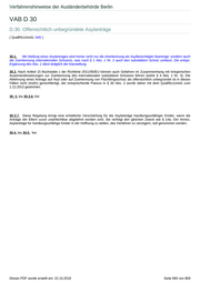 Verfahrenshinweise der Ausländerbehörde Berlin VAB D 30a D.30a. Beschleunigte Verfahren, besondere Aufnahmeeinrichtung (Asylpaket II; IntG ) 30a.0. Der mit dem Gesetz zur Einführung beschleunigter Asylverfahren (sog. Asylpaket II) eingeführte neue § 30a regelt das beschleunigte Asylverfahren für die in Abs. 1 näher bestimmten Personengruppen. Um die beschleunigten Verfahren durchführen zu können, bedarf es jeweils einer Vereinbarung zwischen dem Leiter des BAMF und der jeweiligen Landesregierung, in Berlin dem Senat bzw. dem zuständigen Senatsmitglied (vgl. § 5 Abs. 5). In Berlin ist eine solche besondere Aufnahmeeinrichtung noch nicht in Funktion. 30a.1. frei ' 30' a.2. Auf die Fälle, in denen das BAMF nicht innerhalb der Frist von einer Woche entscheidet und das Verfahren somit als Regelverfahren fortführt, findet Abs. 3 keine Anwendung. Für Personen aus sicheren Herkunftsstaaten ist in diesen Fällen allerdings § 47 Abs. 1a zu beachten ( vgl. D.47 ). 30a.3. Für Ausländer, deren Asylanträge im beschleunigten Verfahren bearbeitet und entschieden werden, gilt die Wohnverpflichtung in der besonderen Aufnahmeeinrichtung bis zum Abschluss des Verfahrens. Die Wohnverpflichtung gilt darüber hinaus bis zur Ausreise oder Abschiebung im Falle der Einstellung des Asylverfahrens sowie im Falle der Ablehnung des Asylantrags nach § 29 als unzulässig , nach § 29 a oder § 30 als offensichtlich unbegründet oder bei Asylfolgeanträgen, bei denen keine Gründe für eine Wiederaufnahme festgestellt werden (§ 71 Abs. 4). Mit dieser Regelung soll zum einen die Erreichbarkeit der Personen sichergestellt werden, deren Asylanträge im beschleunigten Verfahren bearbeitet werden. Zum anderen dient die Wohnverpflichtung dazu, eine raschere Beendigung des Aufenthalts unmittelbar aus der Aufnahmeeinrichtung heraus zu betreiben, wenn der Asylantrag abgelehnt oder das Verfahren eingestellt wurde. Das beschleunigte Verfahren gilt nicht für nach Berlin verteilte unbegleitete minderjährige Personen. Merke: Sofern die Durchführung des beschleunigten Verfahrens für eine bestimmte Personengruppe festgelegt ist, richtet sich die Verpflichtung, in einer besonderen Aufnahmeeinrichtung zu wohnen, an den Asylantragsteller, der in diese Gruppe fällt, selbst und ist nicht an die tatsächliche Unterbringung geknüpft. Sofern also gesetzliche Folgen an diese Verpflichtung knüpfen (vgl. § 59a, § 61), reicht die gesetzliche Verpflichtung aus, ohne dass es auf die tatsächliche Unterbringung in einer besonderen Aufnahmeeinrichtung ankommt. E-Mail an die VAB-Redaktion Dieses PDF wurde erstellt am: 22.10.2018 Seite 691 von 809