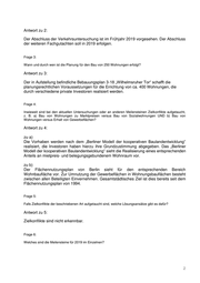 Antwort zu 6: Ziele für 2019 sind die Vorlage sämtlicher Ergebnisse aus den verschiedenen Fachgutachten, die förmliche Beteiligung der Behörden und sonstigen Träger öffentlicher Belange (§ 4 Abs. 2 BauGB) sowie die Abstimmung der städtebaulichen Verträge. Berlin, den 19.12.2018 In Vertretung Sebastian Scheel ................................ Senatsverwaltung für Stadtentwicklung und Wohnen 3