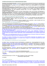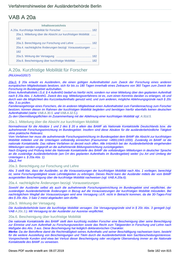 Verfahrenshinweise der Ausländerbehörde Berlin VAB A 20 Inhaltsverzeichnis A.20. Forschung ........................................................................................ 176 Änderungsdatum ................................................................................ 614 20.0. Allgemeines .............................................................................. 176 qualifizierte Forscher ................................................................... 176 Anerkannte und nicht-anerkannte Forschungseinrichtungen ...... 176 Missbrauch .................................................................................. 177 allgemeinen Erteilungsvoraussetzungen ..................................... 177 Rechtsgrundlage ......................................................................... 177 Widerruf ....................................................................................... 177 20.1. Erteilungsvoraussetzungen ...................................................... 177 20.1.1.1a. anerkannte Forschungseinrichtungen ........................ 177 Gültigkeit der Vereinbarung .................................................. 177 20.1.1.1b. nicht-anerkannte Forschungseinrichtungen ............... 178 Lebensunterhaltssicherung .................................................. 178 20.1.1.2. Kostenübernahmeerklärung ......................................... 178 20.1.2. 60-Tage-Frist ................................................................... 178 20.2. Verzicht auf die Vorlage der Kostenübernahmeerklärung ........ 178 20.3. Abgabe einer allgemeinen Übernahmeerklärung ..................... 179 20.4. Geltungsdauer der Aufenthaltserlaubnis .................................. 179 20.5. Berechtigung zur Ausübung einer Forschungstätigkeit ............ 179 20.6. Ausschlussgründe .................................................................... 179 20.7. Verlängerung der AE nach Abschluss der Forschungstätigkeit ..... 180 20.8. Aufenthalt von international Schutzberechtigten als Forscher .. 180 zur Beantragung der Aufenthaltserlaubnis .................................. 181 A.20. Forschung Änderungsdatum ( RiLiUmsG2017 ; 17.12.2018 ; 05.07.2019 ) 20.0. Allgemeines Mit dem ...weggefallen... Richtlinienumsetzungsgesetz 2017 wird ...weggefallen... § 20 ...weggefallen... überarbeitet und folgt nun den Vorgaben der REST-Richtlinie. ...weggefallen... Bzgl. der Verfahrensvorschriften ...weggefallen... wird auf die ebenso überarbeiteten §§ 38 a –f der AufenthV verwiesen. qualifizierte Forscher Nach den Vorgaben der ...weggefallen... REST-Richtlinie soll für qualifizierte Forscher im Sinne der Definition in Artikel ...weggefallen... 3 Nr. 2 der Richtlinie ein besonderes Zulassungsverfahren Anwendung finden, in dem die Expertise ...weggefallen... bestehender öffentlicher und privater Forschungseinrichtungen genutzt wird. Hinsichtlich des für Forscher privilegierten Familiennachzugs wird auf § 30 Abs. 1 S. 2 Nr. 1 und § 32 Abs. 2 S. 2 Nr. 2 verwiesen. ...weggefallen... Anerkannte und nicht-anerkannte Forschungseinrichtungen Anerkannte Forschungseinrichtungen im Sinne des § 20 i.V.m. § 38 a Abs. 1 AufenthV können auch Unternehmen sein, die Forschung betreiben. Bei der Ausgestaltung des Verfahrens wird der Umstand berücksichtigt, dass Forschungseinrichtungen im Gegensatz zu Ausländerbehörden eher geeignet sind, die fachliche Qualifikation eines Forschers und den Bedarf hieran festzustellen. Forschern, mit denen die Forschungseinrichtungen entsprechende Aufnahmevereinbarungen (zum Inhalt und den Voraussetzungen solcher Vereinbarungen vgl. § 38 f AufenthV) oder entsprechende Verträge abschließen, ist gem. § 20 Abs. 1 ...weggefallen... eine Aufenthaltserlaubnis zur Durchführung des in der Aufnahmevereinbarung bzw. des Vertrages genannten Vorhabens zu erteilen. Auch die Forschung an einer nicht-anerkannten Forschungseinrichtung fällt unter den Regelungsbereich von § 20. Eine nicht-anerkannte Einrichtung betreibt trotz allem Forschung im Sinne des § 20 Abs. 1 S. 1 Nr. 1b, wenn es sich um Dieses PDF wurde erstellt am: 08.07.2019 Seite 176 von 815