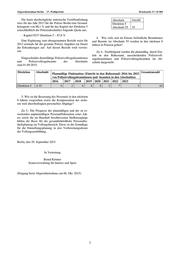 Drucksache 17 / 16 984 Schriftliche Anfrage 17. Wahlperiode Schriftliche Anfrage des Abgeordneten Joschka Langenbrinck (SPD) vom 25. August 2015 (Eingang beim Abgeordnetenhaus am 16. September 2015) und Antwort Personalsituation im Neuköllner Polizeiabschnitt 55 Im Namen des Senats von Berlin beantworte ich Ihre Zu 1.: Für das Jahr 2004 liegen keine auswertbaren Schriftliche Anfrage wie folgt: Daten vor. Die Zahlen für den Abschnitt 55 der Direktion 5 ab dem Jahr 2005 sind nachfolgend in aggregierter 1. Wie hat sich die Personalsituation im Polizeiab- Form zum Personal in Vollzeitäquivalenten (VZÄ) wie- schnitt 55, Standort Rollbergstraße 9, 12053 Berlin, in dergegeben: den einzelnen Jahren zwischen 2004 und 2014 entwi- ckelt? Abschnitt 55: Besch.- VZÄ VZÄ VZÄ VZÄ VZÄ VZÄ VZÄ VZÄ VZÄ VZÄ gruppe 2005 2006 2007 2008 2009 2010 2011 2012 2013 2014 m.zA* m.zA* Beamt. 152,37 179,06 189,16 191,94 193,58 192,93 209,55 209,19 212,26 202,32 Ang/TB 30,45 14,20 11,69 8,00 6,68 6,84 5,91 5,91 5,91 4,41 *m. zA: einschließlich Beamtinnen und Beamten zur Anstellung; aufgrund des Beamtenstatusgesetzes zum 01. April 2009 entfallen. VZÄ: Vollzeitäquivalent Besch.Gruppe:Beschäftigtengruppe Beamt: Beamtinnen/Beamte Ang: Angestellte TB: Tarifbeschäftigte Starke Personalschwankungen sind auf Abschnittsfu- 2. (Wie hoch ist das durchschnittliche Alter der der- sionen und Neuzuschnitte der örtlichen Zuständigkeiten zeit eingesetzten Dienstkräfte im Abschnitt 55? mit entsprechenden Anpassungen der Abschnittsbezeich- nungen im Betrachtungszeitraum zurückzuführen. Zu 2.: Polizeiabschnitt (Durchschnittsalter in Jahren am Beamtinnen/ Beamte Tarifbeschäftigte Gesamt 30.06.2015) Direktion 5 Abschnitt 55 41,37 50,67 41,62 bei der Senatsverwaltung für Finanzen angesiedelte Sta- 3. Wie viele Dauerkranke und eingeschränkt Dienst- tistikstelle Personal, die dazu den jährlichen „Bericht über fähige gibt es derzeit im Abschnitt 55? die Pauschale Gesundheitsquote der Beschäftigten im unmittelbaren Landesdienst Berlin“ herausgibt. Der der- Zu 3.: Angaben über krankheitsbedingte Abwesen- zeit aktuellsten Fassung dieses Berichtes für das Be- heitszeiten werden über das Landesverfahren IPV (Inte- richtsjahr 2013 ist die Gesundheitsquote der einzelnen grierte Personalverwaltung) erfasst. Die statistische Aus- Behörden zu entnehmen. Eine behördeninterne statisti- wertung erfolgt ausschließlich durch die sche Auswertung von IPV zur Erkrankungsdauer ist nicht möglich. Die Drucksachen des Abgeordnetenhauses sind bei der Kulturbuch-Verlag GmbH zu beziehen. Hausanschrift: Sprosserweg 3, 12351 Berlin-Buckow · Postanschrift: Postfach 47 04 49, 12313 Berlin, Telefon: 6 61 84 84; Telefax: 6 61 78 28.