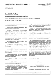 Drucksache 17 / 13 395 Schriftliche Anfrage 17. Wahlperiode Schriftliche Anfrage des Abgeordneten Dr. Turgut Altug (GRÜNE) vom 12. März 2014 (Eingang beim Abgeordnetenhaus am 13. März 2014) und Antwort Der Berliner Wald braucht Hilfe! Im Namen des Senats von Berlin beantworte ich Ihre Frage 4: Werden die klimaschutz-relevanten Aspekte, Schriftliche Anfrage wie folgt: wie die Wahl der Baumart, in die Planungen einbezogen? Wenn, ja, wie?, wenn nein, warum nicht? Frage 1: Wie ist die aktuelle Situation beim „Wald- umbauprojekt“ der Berliner Forsten? Antwort zu 4: Klimaschutzrelevante Aspekte werden berücksichtigt, indem bei der Pflanzung eine intensive Antwort zu 1: 2012 wurden als vorbereitende Maß- Mischung heimischer Baumarten erfolgt. nahme in den Forstämtern Köpenick und Grunewald auf 155 ha Kiefernwald die aus Nordamerika stammende Frage 5: Wie bewertet der Senat den Waldzustandsbe- Spätblühende Traubenkirsche gerodet und auf 80 ha ca. richt 2013, nach dem 33% der Berliner Waldflächen ohne 200.000 Laubgehölze gepflanzt. Schäden sind? 2013 wurden weitere 207 ha vorbereitet und die Antwort zu 5: Der Senat bewertet den Waldzustands- Mischwaldentwicklung durch Pflanzung von 301.000 bericht 2013 als sehr informativ, umfassend und gut. Jungpflanzen auf 150 ha unterstützt. Im Waldzustandsbericht 2013 werden in bewährter Für das Referenzprojekt „Wald-Klima-Pfad Grune- Weise Informationen zur gesundheitlichen Entwicklung wald“ wird ein Konzept entwickelt. der Wälder innerhalb des Landes Berlin aufgelistet – auch unterteilt nach Baumarten. Dafür werden im Waldzu- Frage 2: Werden auch Berliner Wälder in Branden- standsbericht 2013 unterschiedliche Wirkfaktoren forstsa- burg ins Projekt einbezogen? Wenn, ja, wie?, wenn nein, nitärer Art diskutiert, die starken Einflüsse der Witterung warum nicht? auf die Baumgesundheit dargelegt und auch auf fachres- sortübergreifende Lösungsmöglichkeiten für eine bessere Antwort zu 2: Der Waldumbau in Berlin wird aus Mit- Entwicklung der Waldbäume hingewiesen. Denn generell teln der Strategie Stadtlandschaft finanziert. Diese Pro- unterliegen die Berliner Wälder durch die Stadtnähe, eine jektmittel werden ausschließlich innerhalb des Landes hohe Besucherfrequenz und die Trinkwassergewinnung Berlin eingesetzt. einer erhöhten Belastung im Vergleich zu Wäldern im Umland. Die Berliner Forsten arbeiten u.a. mit dem Waldumbaumaßnahmen auf den berlineigenen Wald- Mischwaldprogramm an einer kontinuierlichen Stabilisie- flächen in Brandenburg werden durch die Berliner Fors- rung der Wälder. ten zusätzlich durchgeführt. Frage 3: Wie sehen die Planungen für die nächsten Berlin, den 18. März 2014 Jahre aus? Antwort zu 3: Die Maßnahmen werden in der unter 1. In Vertretung beschriebenen Größenordnung fortgeführt. Christian Gaebler Wenn EU-Mittel zur Verfügung stehen wird die ................................ Mischwaldentwicklung auf 200 ha / Jahr ausgeweitet. Senatsverwaltung für Stadtentwicklung und Umwelt Auch auf den berlineigenen Waldflächen in Branden- burg werden die Waldumbaumaßnahmen – wie in den vergangenen Jahren - fortgeführt. (Eingang beim Abgeordnetenhaus am 21. Mrz. 2014) Die Drucksachen des Abgeordnetenhauses sind bei der Kulturbuch-Verlag GmbH zu beziehen. Hausanschrift: Sprosserweg 3, 12351 Berlin-Buckow · Postanschrift: Postfach 47 04 49, 12313 Berlin, Telefon: 6 61 84 84; Telefax: 6 61 78 28.