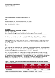 Drucksache 18 / 20 604 Schriftliche Anfrage 18. Wahlperiode Schriftliche Anfrage des Abgeordneten Joschka Langenbrinck (SPD) vom 15. August 2019 (Eingang beim Abgeordnetenhaus am 21. August 2019) zum Thema: Kitaplatz-Mangel in der Neuköllner Bezirksregion Reuterstraße III und Antwort vom 04. September 2019 (Eingang beim Abgeordnetenhaus am 06. Sep. 2019) Die Drucksachen des Abgeordnetenhauses sind bei der Kulturbuch-Verlag GmbH zu beziehen. Hausanschrift: Sprosserweg 3, 12351 Berlin-Buckow · Postanschrift: Postfach 47 04 49, 12313 Berlin, Telefon: 6 61 84 84; Telefax: 6 61 78 28.