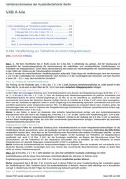 Verfahrenshinweise der Ausländerbehörde Berlin VAB A 44 A.44. Berechtigung zur Teilnahme an einem Integrationskurs ( 12.04.2018, 31.07.2018, FzNeuG) 44.0. Grundsätzlich ist jeder Ausländer, der einen der in § 44 Abs. 1 S. 1 genannten Aufenthaltstitel für einen nicht nur vorübergehenden Aufenthalt erhält, ein Jahr - gerechnet ab der Erteilung des Titels - berechtigt, an einem Kurs teilzunehmen (§ 44 Abs. 1 und 2). Die Verkürzung dieser Anspruchsfrist durch das IntG zum 06.08.2016 von zwei Jahren auf ein Jahr soll den frühzeitigen Spracherwerb fördern. Um dies sicherzustellen, wurde gleichzeitig die Frist, innerhalb derer nach Anmeldung beim Kursträger der Integrationskurs beginnen soll, von drei Monaten auf 6 Wochen verkürzt (vgl. § 7 Abs. 4 S. 2 IntV). In den sonstigen Fällen von Aufenthaltstiteln geht der Gesetzgeber davon aus, dass ein Integrationskurs für die Eingliederung auf Grund der Bildung des Ausländers (Fälle des § 19) und/oder der Dauer des Aufenthalts (§ 23 Abs. 1, § 16 Abs. 1) nicht zwingend ist. Die Berechtigung zur Teilnahme an einem Integrationskurs gilt auch für Personen , denen auf Grund ihrer Rechtsstellung als langfristig Aufenthaltsberechtigte in anderen Mitgliedstaaten der Europäischen Union eine Aufenthaltserlaubnis nach § 38a erteilt wird. Mit der Einfügung des § 36a in § 44 Abs. 1 S. 1 durch das Gesetz zur Neuregelung des Familiennachzugs zu subsidiär Schutzberechtigten wird klargestellt, dass auch in diesen Fällen die Berechtigung der nachziehenden Person zur Teilnahme an einem Integrationskurs besteht. Kleinkinder und schulpflichtige Kinder haben jedoch keinen Anspruch auf die Berechtigung (s.u. A.44.3.1.1.). Die Ausländerbehörde wird bei der Vorsprache für die Ersterteilung eines Aufenthaltstitels gem. § 44 Abs. 1 S. 1 Nr. 1 – 2 sowie S. 2 und Abs. 3 prüfen, wer teilnahmeberechtigt ist. Liegen die Voraussetzungen des § 44 Abs. 1 und 3 Satz 2 für einen Teilnahmeanspruch vor, so ist durch die Ausländerbehörde bei der Erteilung des Titels ( § 44 a Abs. 1 S. 1 Nr. 1, S. 2) immer mit dem Berechtigten zu prüfen, ob er gem. § 44 a Abs. 1 S. 1 Nr. 1 teilnahmeverpflichtet ist oder werden sollte (vgl. dazu Ausführungen unter A.44a.). ...weggefallen... Personen, die einen Anspruch auf Teilnahme an einem Integrationskurs gem. § 44 Abs. 1 anmelden, obwohl die Voraussetzungen offensichtlich nicht vorliegen, sind entsprechend zu beraten. Beharren sie auf einer Entscheidung, ist der Antrag mündlich abzulehnen und dies aktenkundig zu machen. Sollte der Betroffene auf einer schriftlichen Bescheidung bestehen, so wäre der Antrag mit einer kurzen Begründung und Rechtsbehelfsbelehrung abzulehnen. Gegen den Bescheid ist der Widerspruch zulässig. 44.1.1. Maßgeblich für das Vorliegen der Anspruchsvoraussetzungen des § 44 Abs. 1 S. 1 ist, dass den Betroffenen erstmals eine der dort genannten Aufenthaltserlaubnisse neuen Rechts erteilt wird. Der Zeitpunkt der Einreise ist insoweit unerheblich. Im Umkehrschluss gilt, dass die Personen, die lediglich eine Duldung oder eine Aufenthaltsgestattung besaßen und nunmehr erstmals eine Aufenthaltserlaubnis nach dem Katalog des § 44 Abs. 1 S. 1 Nr. 1 erhalten, in den Genuss eines Anspruchs auf einen Integrationskurs kommen. 44.1.2. Ob der Aufenthalt dauerhaft angelegt ist, ist auch unter Berücksichtigung der Hinweise des BMI zum Richtlinienumsetzungsgesetz vom 02.10.2007 (Nr. 207 f.) wie folgt zu beurteilen. Von einem vorübergehenden Aufenthalt ist bei allen Ehegatten von Ausländern auszugehen, die einen Aufenthaltstitel zum Zweck der Ausbildung (§§ 16, 17 AufenthG) besitzen. In diesen Fällen kann erst dann von einer möglichen künftigen Dauerhaftigkeit des rechtmäßigen Aufenthalts ausgegangen werden, wenn für den Stammberechtigten eine Aufenthaltserlaubnis zum Zweck der Erwerbstätigkeit gem. § 18 oder § 21 beantragt wird oder eine Aufenthaltserlaubnis gem. § 16 Abs. 4 zur Arbeitsplatzsuche erteilt wird. Bei türkischen Religionslehrern, die sich auf Grund einer bilateralen Vereinbarung zwischen der Bundesrepublik Deutschland und der Türkei hier aufhalten und nach wenigen Jahren das Bundesgebiet wieder verlassen, ist ebenfalls von einem vorübergehenden Aufenthalt auszugehen. Wird eine Nebenbestimmung gem. § 8 Abs. 2 verfügt, ist der Anspruch auf einen Integrationskurs ausgeschlossen, weil hier von einem vorübergehenden Aufenthalt auszugehen ist. Bei einem Ehegattennachzug zu deutschen Staatsangehörigen ist nie von einem vorübergehenden Aufenthalt auszugehen. Problematisch sind die Fälle, in denen erstmals eine Aufenthaltserlaubnis zum Zwecke des Familiennachzugs für weniger als ein Jahr erteilt wird, weil derjenige, zu dem der Nachzug stattfindet, eine Erlaubnis besitzt, die nur noch für einen kürzeren Zeitraum gültig ist. In dieser Konstellation ist einzelfallbezogen zu prüfen, ob die Dauer des Aufenthalts des Ehepaares voraussichtlich ein Jahr oder länger betragen wird, d.h. nach derzeitigem Sachstand von einer Verlängerung der Aufenthaltserlaubnis ausgegangen werden kann. Im Zweifel ist hier ein großzügiger Maßstab anzulegen und ist von einem dauerhaften Aufenthalt im Sinne des § 44 Abs. 1 S. 1 auszugehen. 44.2. Der Teilnahmeanspruch erlischt nicht nach einem Jahr, wenn sich eine anspruchsberechtigte Person aus von ihr nicht zu vertretenden Gründen nicht innerhalb der Jahresfrist zum Kurs anmelden konnte. Die Darlegungslast der Hinderungsgründe, die ggü. der ABH als der nach § 6 Abs. 1 S. 1 IntV für die Ausstellung der Teilnahmeberechtigung zuständigen Behörde geltend zu machen sind, liegt dabei bei der anspruchsberechtigten Person; zu denken ist hier z.B. an eine längerfristige Erkrankung. Insgesamt ist bei der Annahme von Hinderungsgründen ein großzügiger Maßstab anzulegen. Reist der zum Integrationskurs berechtigte Ausländer nicht nur vorübergehend aus dem Bundesgebiet aus (A.51.1.6.), erlischt auch die Berechtigung zur Teilnahme am Integra