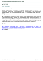 Verfahrenshinweise der Ausländerbehörde Berlin VAB A 71 A.71. Zuständigkeit ( DatenaustauschVerbG; 26.10.2016; 02.11.2016 ) 71.1.1. Die im ZustkatOrd genannten Aufgaben werden auch nach dem 01.01.2005 (Inkrafttreten des ZuwG) weiterhin durch die Bürgerämter der Bezirke wahrgenommen. Zur örtlichen Zuständigkeit für Befristungsentscheidungen sowie zum Erfordernis des Einvernehmens anderer Ausländerbehörden vgl. A.72.3.. 71.1.2. bis 71. 3.1b . frei 71.3.1 c . Zuständig für die Befristungsentscheidung ist in Fällen einer Zurückschiebung die Bundespolizei. Über die Befristungen wird auf der Ebene der Bundespolizeiämter entschieden. Vor der Entscheidung überprüfen die Bundespolizeiämter, ob der betroffene Ausländer bei einer Ausländerbehörde erfasst ist. Ist dies der Fall, wird die Entscheidung über die Befristung von der Bundespolizei nur nach Einsicht in die Ausländerakte getroffen. Die aktenführende ABH hat dabei die Möglichkeit einer Stellungnahme. Im Zweifel setzt sich das Bundespolizeiamt mit der ABH ins Benehmen, um eine einvernehmliche Entscheidung zu treffen. Im Rahmen einer Stellungnahme zur Befristung nach einer Zurückschiebung gelten dieselben ermessensleitenden Kriterien wie bei der Sperrwirkung auf Grund einer Abschiebung (vgl. A..11.1.3.). 71.3.1d. bis 71.3.1e . frei 71.3.2. Neben der Ausstellung von Ausnahmevisa und Passersatzpapieren nach § 14 Abs. 2 obliegt der Bundespolizei auch die Erteilung einer Duldung nach § 60a Abs. 2a in Fällen der Rückübernahme nach gescheiterter Abschiebung. Die Zuständigkeit obliegt in diesen Fällen den Grenzbehörden, weil der Aufenthalt im Bundesgebiet dort beginnt und der Status des Ausländers ab dem Zeitpunkt der Einreise und nicht erst der Vorsprache bei der Ausländerbehörde durch die Duldung dokumentiert werden soll. 71.3.3. bis 71.3.7. frei 71.3.8. Die Zuständigkeit für das Ausstellen von Bescheinigungen über die Einreise (Art. 1 2 Abs. 2 des Schengener Grenzkodex) obliegt auch den Grenzbehörden. Diese Bescheinigungen sind bei fehlendem Einreisekontrollstempel zu erteilen, wenn Ort und Zeit der Einreise über eine Schengen-Außengrenze nachgewiesen werden (EU-Stempel-VO). 71.4.1. Mit dem Datenaustauschverbesserungsgesetz erklärt § 71 Abs. 4 S. 1 neben den Ausländerbehörden nunmehr auch die Polizeien der Länder für alle in §§ 48, 48a, 49 Abs. 2 - 9 niedergelegten Eingriffsbefugnisse ( wie z.B. die Durchsuchung des § 48 Abs. 3 S. 2 oder Feststellung und Sicherung der Identität von unerlaubt nach Deutschland eingereisten oder in Deutschland aufhältigen Ausländern nach § 49 ) für originär zuständig. Bislang waren diese bei Identitätsfeststellungen nur im Wege der Amtshilfe tätig. Nach dem Willen des Gesetzgebers dient die Erweiterung dieser Befugnisse auf die Länderpolizeien der Vereinfachung und Beschleunigung von erkennungsdienstlichen Behandlungen und damit der Entlastung der mit dem Vollzug des AufenthG betrauten Behörden. 71.4.2. Bezüglich des § 71 Abs. 4 S. 2 in der Fassung des 1. Änderungsgesetzes wird deutlich, dass in den Fällen der länderübergreifenden Verteilung unerlaubt Eingereister eine parallele Zuständigkeit für die ed-Behandlung mit dem LAF besteht. Praktische Konsequenzen ergeben sich aus der Rechtsänderung für das Berliner Verfahren nicht. 71.4.3. bis 71.6. frei Dieses PDF wurde erstellt am: 11.03.2019 Seite 447 von 818
