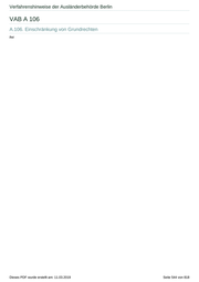 Verfahrenshinweise der Ausländerbehörde Berlin VAB A 106 A.106. Einschränkung von Grundrechten frei Dieses PDF wurde erstellt am: 11.03.2019 Seite 544 von 818