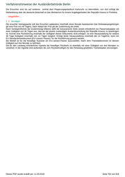 Verfahrenshinweise der Ausländerbehörde Berlin Die Ersuchen sind bis auf weiteres zentral dem Regierungspräsidium Karlsruhe zu übermitteln, von dort erfolgt die Weiterleitung über die deutsche Botschaft an das Ministerium für Innere Angelegenheiten der Republik Kosovo in Prishtina. ... weggefallen ... 2. 3 . Sonstiges Die ersuchte Vertragspartei soll das Ersuchen spätestens innerhalb eines Monats beantworten (bei Drittstaatsangehörigen gilt eine Frist von 45 Tagen). Nach Ablauf der Frist gilt die Zustimmung als erteilt. Nach Vorliegen/Eintritt der Zustimmung(-sfiktion) stellt die kosovarische Seite soweit erforderlich ein Passersatzpapier mit einer Gültigkeit von 30 Tagen aus, das bei der jeweils zuständigen Auslandsvertretung der Republik Kosovo zu beantragen ist. Konnte eine Rückführung innerhalb der Gültigkeit dieses Dokuments nicht erfolgen, ist eine Neuausstellung für weitere 30 Tage Gültigkeit innerhalb von 14 Tagen möglich. Erfolgt keine Neuausstellung innerhalb der 14 Tagefrist, kann ein EU-Standardreisedokument (EU-Laissez Passer) für die Rückführung genutzt werden. Bei Bedarf ist für die freiwillige Ausreise ein EU-Laissez-Passer auszustellen. Nach dem Transitabkommen ist dessen Gültigkeit auf drei Monate zu befristen. Die für den Landweg erforderliche Vignette bei freiwilliger Rückkehr ist ebenfalls mit einer Gültigkeit von drei Monaten zu versehen. In die Vignette sind außerdem die vom Rückkehrwilligen für den Reiseweg gewählten Transitstaaten einzutragen. Dieses PDF wurde erstellt am: 11.03.2019 Seite 764 von 818