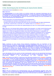 Verfahrenshinweise der Ausländerbehörde Berlin VAB D 63 D.63. Bescheinigung über die Aufenthaltsgestattung ( 17.11.2015; 15.03.2016 ) 63.1. Während des Kirchenasyls hat der Betreffende keinen Anspruch auf Ausstellung einer Aufenthaltsgestattung. Insoweit fehlt es während des Kirchenasyls an einem diesbezüglichen Sachbescheidungsinteresse, weil der Betroffene sich ausschließlich in den Kirchenräumen aufhält und dort versorgt wird. Dies gilt auch für alle anderen Bescheinigungen. Eine Person befindet sich im Kirchenasyl, wenn hierüber ein schriftlicher Beschluss der betreffenden Kirchengemeinde vorliegt. Das Kirchenasyl gilt solange als gewährt, bis dieses durch einen ausdrücklichen Beschluss der Kirchengemeinde wieder aufgehoben wurde und eine Anmeldung außerhalb der Kirche erfolgt. 63.2.1. frei 63.2.2 Mit der Bescheinigung über die Aufenthaltsgestattung wird diese lediglich deklaratorisch verlautbart; sie wird von Amts wegen ausgestellt und verlängert. Die gesetzlich vorgegebene Frist von 6 Monaten orientiert sich dabei an den üblichen Verfahrensdauern von wenigen Wochen. Vor dem Hintergrund der erheblich angestiegenen Verfahrenslaufzeiten ist daher nach Sinn und Zweck der Regelung des § 63 Abs. 2 S. 2 aus Gründen der Kundenorientierung und der Verwaltungseffizienz ein großzügiger Maßstab anzulegen und sollte die Gestattung mit einer Geltungsdauer von einem Jahr ausgestellt werden. Einzelfallbezogene Abweichungen – etwa wenn ein Abschluss des Verfahrens kurz bevorsteht – sind angezeigt. Gleiches gilt auch, wenn die Ausländerbehörde bereits die Ersterteilung der Gestattung vornimmt. 63.3. – 63.5. frei Dieses PDF wurde erstellt am: 23.08.2019 Seite 728 von 822