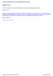 Verfahrenshinweise der Ausländerbehörde Berlin VAB D 73c D.73c. Widerruf und Rücknahme von Abschiebungsverboten (QualRiLiUmsG) 73c.0. Der mit dem Qualifikationsrichtlinienumsetzungsgesetz eingeführte § 73c regelt den Widerruf und die Rücknahme von nationalen Abschiebungsverboten (§ 60 Abs. 5 und 7 S. 1 AufenthG) und entspricht an dieser Stelle dem in diesem Zusammenhang vor Inkrafttreten des Qualifikationsrichtlinienumsetzungsgesetzes geltenden § 73 Abs. 3. 73c.1. bis 73c.3. frei E-Mail an die VAB-Redaktion Dieses PDF wurde erstellt am: 29.11.2019 Seite 740 von 824