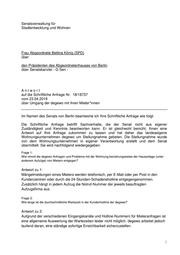 Drucksache 18 / 18 737 Schriftliche Anfrage 18. Wahlperiode Schriftliche Anfrage der Abgeordneten Bettina König (SPD) vom 23. April 2019 (Eingang beim Abgeordnetenhaus am 30. April 2019) zum Thema: Umgang der Degewo mit ihren Mieter*innen und Antwort vom 17. Mai 2019 (Eingang beim Abgeordnetenhaus am 22. Mai 2019) Die Drucksachen des Abgeordnetenhauses sind bei der Kulturbuch-Verlag GmbH zu beziehen. Hausanschrift: Sprosserweg 3, 12351 Berlin-Buckow · Postanschrift: Postfach 47 04 49, 12313 Berlin, Telefon: 6 61 84 84; Telefax: 6 61 78 28.