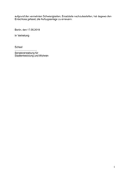 aufgrund der vermehrten Schwierigkeiten, Ersatzteile nachzubestellen, hat degewo den Entschluss gefasst, die Aufzugsanlage zu erneuern. Berlin, den 17.05.2019 In Vertretung Scheel ................................ Senatsverwaltung für Stadtentwicklung und Wohnen 4