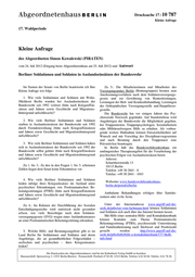 Drucksache 17 / 10 787 Kleine Anfrage 17. Wahlperiode Kleine Anfrage des Abgeordneten Simon Kowalewski (PIRATEN) vom 24. Juli 2012 (Eingang beim Abgeordnetenhaus am 25. Juli 2012) und Antwort Berliner Soldatinnen und Soldaten in Auslandseinsätzen der Bundeswehr Im Namen des Senats von Berlin beantworte ich Ihre Zu 5.: Die Mitarbeiterinnen und Mitarbeiter des Kleine Anfrage wie folgt: Versorgungsamtes Berlin (Rentengruppen) beraten zum Anerkennungsverfahren nach dem Soldatenversorgungs- 1. Wie viele Soldatinnen und Soldaten mit Wohn- gesetz und zur Gewährung von Rentenleistungen, /Meldeort Berlin wurden bei Auslandseinsätzen der Leistungen der Heil- und Krankenbehandlung, Leistungen Bundeswehr seit 1992 verletzt (bitte nach Kriegen/Ein- der Orthopädischen Versorgungsstelle und Hauptfürsor- sätzen und Jahren sowie Geschlecht und Migrations- gestelle. hintergrund aufschlüsseln)? Die Bundeswehr hat vor einigen Jahren das Psy- chosoziale Netzwerk gegründet. Auf Standortebene wird 2. Wie viele Berliner Soldatinnen und Soldaten Angehörigen der Bundeswehr die Möglichkeit gegeben, starben in Auslandseinsätzen der Bundeswehr seit 1992 bei Truppenärzten, Truppenpsychologen, Sozialarbeitern durch Fremdeinwirkung (bitte nach Kriegen/Einsätzen oder Militärseelsorgern Hilfe zu erhalten. Als vorbeu- und Jahren sowie Geschlecht und Migrationshintergrund gende weitere Maßnahme können Einsatzrückkehrer auf aufschlüsseln)? Wunsch und mit Vorschlag des Disziplinarvorgesetzten und nach Beratung durch den Truppenarzt eine 3. Wie viele Berliner Soldatinnen und Soldaten haben Präventivkur beantragen. sich in Auslandseinsätzen der Bundeswehr seit 1992 der In Berlin hält das Bundeswehrkrankenhaus ein Bundeswehr selbst getötet (bitte nach Kriegen/Einsätzen umfangreiches Therapieangebot für die Verarbeitung der und Jahren sowie Geschlecht und Migrationshintergrund psychischen Folgen von Auslandseinsätzen bereit. aufschlüsseln)? Adresse: Scharnhorststraße 13 Zu 1. bis 3.: Zu den in den Fragen 1. bis 3. erbetenen 10115 Berlin Zahlen liegen dem Senat keine Erkenntnisse vor. Telefon: +49 30 2841 - 0 Telefax: +49 30 2841 - 1043 4. Wie viele Berliner Soldatinnen und Soldaten Webseite: www.bundeswehrkrankenhaus- leiden infolge ihres Kriegseinsatzes im Ausland unter berlin.de/portal/a/berlin psychischen Erkrankungen wie Posttraumatischen Be- lastungsstörungen (PTBS) (bitte nach Kriegen/Einsätzen Ambulante Behandlungen erfolgen über Sanitäts- und Jahren sowie Geschlecht und Migrationshintergrund zentren oder zivile Ärzte. aufschlüsseln)? Zu 4.: Im Rahmen der Durchführung des Sozialen Unter der Internetadresse www.angriff-auf-die- Entschädigungsrechts wird statistisch nicht gesondert seele.de/ptbs/rat-vom-fachmann.html können Soldatinnen erfasst, wie viele Berechtigte nach dem Soldaten- und Soldaten sich auch über das Internet beraten lassen. versorgungsgesetz (SVG) wegen eines Auslandseinsatzes Mit Hilfe einer zentralen Hilfe- und Kontaktdatenbank an einer Posttraumatischen Belastungsstörung erkranken. können Kontakte zum Thema Posttraumatische Belastungsstörung (PTBS), psychosoziale Unterstützung und Familienbetreuung nach Stichwort und Postleitzahl 5. Welche Hilfs- und Beratungsangebote gibt es im gesucht werden: http://www.angriff-auf-die- Land Berlin für Soldatinnen und Soldaten und deren seele.de/ptbs/hilfe/hilfe-a-kontaktdatenbank/137-hkdb- Angehörige, die an gesundheitlichen Folgeschäden – info.html seelischen und psychischen – ihres Kriegseinsatzes leiden? Die Drucksachen des Abgeordnetenhauses sind bei der Kulturbuch-Verlag GmbH zu beziehen. Hausanschrift: Sprosserweg 3, 12351 Berlin-Buckow · Postanschrift: Postfach 47 04 49, 12313 Berlin, Telefon: 6 61 84 84; Telefax: 6 61 78 28.