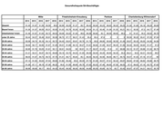 Gesundheitsquote BA-Beschäftigte Mitte Friedrichshain-Kreuzberg Pankow Charlottenburg-Wilmersdorf 2014 2015 2016 2017 2018 2014 2015 2016 2017 2018 2014 2015 2016 2017 2018 2014 2015 2016 2017 2018 Gesamt 91,45 91,87 91,59 90,59 89,6 92,99 92,29 91,37 89,7 89,42 90,84 90,23 89,65 90,02 89,25 91,06 91,68 90,18 89,29 89,68 Beamt*innen 91,26 91,97 89,59 85,31 93,93 91,03 93,79 93,26 92,66 90,54 91,12 92,48 91,09 91,55 90,21 92,11 92,92 87,3 84,77 87,49 Arbeitnehmer*innen 91,46 91,87 91,64 90,72 89,53 93,08 92,22 91,29 89,6 89,38 90,82 90,1 89,59 89,95 89,2 91 91,61 90,3 89,52 89,78 unter 25 Jahre 93,44 94,57 95,48 95,91 95,59 96,75 97,17 96,31 91,43 95,4 93,4 87,8 0 0 0 95,59 95,22 93,41 97,25 97,34 25-29 Jahre 93,58 94,74 95,16 94,14 93,72 94,45 93,91 93,81 92,76 91,74 90,8 89,06 92,63 92,59 91,49 93,07 95,43 95,05 94,36 94,06 30-34 Jahre 93,02 92,17 92,83 91,67 91,25 94,01 91,89 92,15 90,27 91,61 92,62 91,09 92,07 90,44 91,56 92,33 93,04 92,64 91,47 91,9 35-39 Jahre 92,95 91,76 93,05 91,61 90,11 92,61 94,03 92 90,91 91,17 92,07 91,05 91,9 91 88,68 93,13 91,57 90,88 91,34 88,74 40-44 Jahre 91,21 92,31 90,97 89,74 89,69 93,18 93,75 94,03 91,95 89,39 92,94 92,29 89,95 92,35 90,2 86,21 92,8 92,01 90,03 89,5 45-49 Jahre 88,03 91,87 89,73 89,72 87,76 91,01 88,71 85,64 85,1 86,54 92,34 92,58 86,93 88,71 89,72 93,57 91,53 87,16 87,47 90 50-54 Jahre 87,12 91,83 90,64 87,54 89,82 91,86 90,46 90,6 89,39 87,73 91,09 90,57 87,61 92,42 89,87 88,84 87,92 86,82 85,88 88,75 55-59 Jahre 91,28 87,11 88,19 87,38 86,22 90,6 91,58 89,69 85,78 87,02 83,53 87,48 86,92 87,56 88,53 87,4 89,63 87,16 82,75 87,63 ab 60 Jahre 88,98 89,96 86,17 88,4 84,42 93,45 89,36 88,06 88,56 84,86 85,59 85,69 82,74 83,7 83,42 85,87 87,97 84,21 86,01 85,76