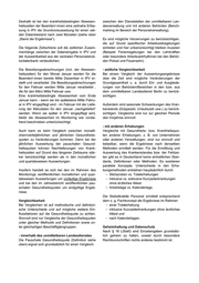Deshalb ist bei den krankheitsbedingten Abwesen- zwischen den Dienststellen der unmittelbaren Lan- heitszeiten der Beamten/-innen eine zeitnahe Erfas- desverwaltung und mit anderen Behörden (Bench- sung in IPV die Grundvoraussetzung für einen vali- marking im Bereich der Personalverwaltung). den Datenbestand nach zwei Monaten (siehe oben „Stand der Ergebnisse“). Es sind mögliche Verzerrungen zu berücksichtigen, die auf Grund spezifischer Arbeitszeitregelungen Die folgende Zeitschiene soll die zeitlichen Zusam- eintreten und hier unberücksichtigt bleiben mussten menhänge zwischen der Dateneingabe in IPV und (Beispiel Ferienregelungen bei den Lehrkräften der Auswertbarkeit aus der zentralen Personalstruk- oder besondere Arbeitszeitrhythmen bei den Behör- turdatenbank verdeutlichen: den Polizei und Feuerwehr). Die Besoldungsabrechnungen (incl. der Abwesen- - zeitliche Vergleichbarkeit heitszeiten) für den Monat Januar werden für die Bei einem Vergleich der Auswertungsergebnisse Beamten/-innen bereits Mitte Dezember in IPV er- über die Zeit sind mögliche Veränderungen der stellt und verarbeitet. Die Besoldungsabrechnungen Grundgesamtheit u. a. durch Ein- und Ausgliede- für den Februar werden Mitte Januar verarbeitet , rungen von Behörden/Bereichen in den bzw. aus die für den März Mitte Februar usw. dem unmittelbaren Landesdienst Berlin zu berück- Eine krankheitsbedingte Abwesenheit vom Ende sichtigen. Januar kann - wenn sie bis spätestens Mitte Febru- ar in IPV eingepflegt wird - im Februar mit der Liefe- Außerdem sind saisonale Schwankungen des Kran- rung der Märzdaten für den Januar „nachgeliefert“ kenstands (Grippezeit, Urlaubszeit usw.) zu berück- werden. Wenn sie später in IPV eingepflegt wird, sichtigen. Vergleiche sind nur zur gleichen Periode bleibt die Abwesenheit im Monitoring wie vorste- des Vorjahres sinnvoll. hend beschrieben unberücksichtigt. - mit anderen Erhebungen Auch kann es beim Vergleich zwischen monatli- Vergleiche mit Gesundheits- bzw. Krankheitsquo- chen/vierteljährlichen und jährlichen Gesundheits- ten anderer Erhebungen, z. B. von Unternehmen quoten zu Veränderungen kommen. Denn bei der oder anderen Verwaltungen, sind nur sinnvoll und jährlichen Auswertung der pauschalen Gesund- belastbar, wenn die Ergebnisse nach denselben heitsquoten können Nachlieferungen von Krank- Methoden ermittelt werden. Für die Ermittlung und heitszeiten auf Grund des längeren Zeitraums stär- Auswertung des Krankenstandes bzw. der Fehlzei- ker berücksichtigt werden als in den monatlichen ten gibt es in Deutschland keine einheitlichen Stan- und quartalsweisen Auswertungen. dards, Definitionen oder Methoden. Es existieren parallele Konzepte. Unterschiede in den Erhe- Insofern handelt es sich bei den im Rahmen des bungsmethoden entstehen hauptsächlich durch: Monitorings veröffentlichten monatlichen und quar- Stichproben vs. Totalerhebungen talsweisen Auswertungen um vorläufige Ergebnisse inklusive vs. exklusive Kurzzeiterkrankungen und bei den im Jahresbericht veröffentlichten pau- ohne ärztliches Attest schalen Gesundheitsquoten um endgültige Ergeb- Arbeitstage vs. Kalendertage. nisse. Die Statistikstelle Personal ermittelt entsprechend Vergleichbarkeit dem o. g. Fachkonzept die Ergebnisse im Rahmen Bei Vergleichen ist auf methodische und definitori- einer Totalerhebung sche Unterschiede und auf mögliche weitere Ein- inklusive Kurzzeiterkrankungen ohne ärztliches flussfaktoren auf die Gesundheitsquote zu achten. Attest und Sinnvoll sind nur Vergleiche der Gesundheitsquoten nach Kalendertagen. unter gleicher Methodik und Definitionen sowie un- ter gleichartigen Beschäftigtengruppen. Geheimhaltung und Datenschutz Nach § 16 LStatG sind Einzelangaben grundsätz- - innerhalb des unmittelbaren Landesdienstes lich geheim zu halten, soweit durch besondere Die Pauschale Gesundheitsquote (Definition siehe Rechtsvorschriften nichts anderes bestimmt ist. oben) eignet sich grundsätzlich für einen Vergleich