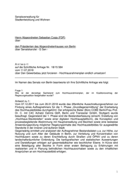 Senatsverwaltung für Stadtentwicklung und Wohnen Herrn Abgeordneten Sebastian Czaja (FDP) über den Präsidenten des Abgeordnetenhauses von Berlin über Senatskanzlei - G Sen - Antwort auf die Schriftliche Anfrage Nr. 18/15 584 vom 11.07.2018 über Den Gewerbebau jetzt forcieren - Hochhausrahmenplan endlich umsetzen! Im Namen des Senats von Berlin beantworte ich Ihre Schriftliche Anfrage wie folgt: Frage 1: Wie ist der derzeitige Sachstand zum Hochhausrahmenplan, der im Koalitionsvertrag der Regierungskoalition festgehalten wurde? Antwort zu 1: Vom 07.12.2017 bis zum 26.01.2018 wurde das öffentliche Ausschreibungsverfahren zur Findung eines Auftragnehmers für die 1. Phase „Grundlagenermittlung“ der Erarbeitung des Hochhausleitbildes durchgeführt. Der erfolgreiche Bieter (Büro COBE Berlin/Frau Prof. Dr. C. mit C4C Achatzi Dahms GbR, Berlin und Transsolar GmbH, Stuttgart) wurde beauftragt. Gegenstand der 1. Phase sind die Bestandserfassung (einschl. Erstellung von „Hochhaus-Steckbriefen“ sowie einer digitalen Hochhausplattform), die Konzeption und prozessbegleitende Abstimmung mit Hauptverwaltung und Bezirken sowie eine testweise Anwendungsprüfung möglicher Regelungsinhalte des Hochhausleitbildes für ausgewählte Standorte in der inneren und äußeren Stadt. Gegenwärtig ermittelt und analysiert der Auftragnehmer Bestandsdaten u.a. zur Höhe, zur Nutzung und zum Alter der Gebäude in Berlin, zur Verteilung und Konzentration von Hochhäusern sowie zu deren Erschließung durch Straßen und ÖPNV und zu deren landschaftsräumlicher Einbindung. Die kartografischen und statistischen Auswertungen und Darstellungen erfolgen auf gesamtstädtischer wie bezirklicher Ebene. In Kürze wird eine Beteiligung aller Bezirke in Form einer ersten Befragung zu Erfahrungen mit realisierten und in Planung befindlichen Hochhausvorhaben sowie zu den inhaltlichen Ansprüchen an ein Hochhausleitbild erfolgen. 1