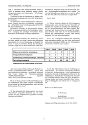 Abgeordnetenhaus Berlin – 17. Wahlperiode Drucksache 17 / 17 962 vom 22. Dezember 2003 (Bundesgesetzblatt (BGBl.) I Vaterland als dringendste Sorge am Herzen liegen müs- 2836) in nationales Recht umgesetzt worden. Hierbei sen.“, die Maximilien de Robespierre am 5. Februar 1794 erfolgte insbesondere eine Anpassung des § 129a Strafge- vor dem Nationalkonvent tätigte, bevor er noch im selben setzbuch (StGB). Jahr dem Pariser Revolutionstribunal zum Opfer fiel? Terrorismus ist über die Strafbarkeit der Bildung einer terroristischen Vereinigung (§§ 129a, 129b StGB) gesetz- Zu 10.: Nein. lich bestimmt. Als Terrorismus werden darüber hinaus schwerwie- gende Politisch motivierte Gewaltdelikte (Katalogtaten 11. Welche weiteren in Berlin seit 2011 begangenen des § 129a StGB) sowie Verstöße gegen die §§ 89a, 89b, Straftaten oder -serien sieht der Senat als "Terrorakt" an? 89c und 91 StGB erfasst. Gehören dazu auch die 25 Anschläge und Schmähungen, Der Begriff „Terrorakt“ ist nicht gesetzlich definiert die 2015 gegen Gotteshäuser und andere religiöse Ein- und in der umgangssprachlichen Verwendung der subjek- richtungen gab, ohne dass dabei ein einziger Tatverdäch- tiven Auslegung der jeweiligen Verwenderin bezie- tiger ermittelt wurde oder die 57 fremdenfeindlichen hungsweise des jeweiligen Verwenders unterworfen. Angriffe auf Flüchtlingsheime, welches einen Anstieg gegenüber 2014 von 46 Prozent bedeutet? 10. Oder folgt die Definition eher der Aussage „Terror Zu 11.: Der nachfolgenden tabellarischen Aufstellung ist nichts anderes als rasche, strenge und unbeugsame kann entnommen werden, wie viele Fälle der Politisch Gerechtigkeit. Er ist eine Offenbarung der Tugend. Der motivierten Kriminalität (PMK) mit der Deliktsqualität Terror ist nicht ein besonderes Prinzip der Demokratie, „Terrorismus“ in Berlin erfasst wurden. sondern er ergibt sich aus ihren Grundsätzen, welche dem 2011 2012 2013 2014 2015 Bildung terroristische Vereinigung 1 1 5 7 12 Kriegswaffenkontrollgesetz 0 0 1 0 0 Vorbereitung schwere staatsgef. Gewalttat 3 4 20 35 20 Terrorismus gesamt 4 5 26 42 32 Fallaufkom m en der Deliktsqualität Terrorism us Alle Taten sind dem Phänomenbereich „Politisch mo- Zu 12.: Die Polizei Berlin ist bei der Verfolgung von tivierte Ausländerkriminalität“ (PMAK) - jedoch nicht allen Straftaten - also auch bei terroristischen Straftaten ausschließlich dem Islamismus - zuzurechnen. Insgesamt im Sinne des Strafgesetzbuches - dem Legalitätsprinzip neun Taten wurden im Themenzusammenhang unterworfen. Sie wird alle Maßnahmen treffen, die für die „PKK/Kurdenproblematik“ registriert Aufklärung des Sachverhaltes notwendig sind. Die dafür (2013 - 2015 jeweils drei Fälle pro Jahr). zur Verfügung stehenden Mittel sind in der Strafprozess- ordnung genannt und stehen hinsichtlich ihrer Anwen- Die in der Frage genannten strafbaren Handlungen ge- dung in Abhängigkeit zur Schwere der zu verfolgenden gen Gotteshäuser und andere religiöse Einrichtungen Tat. sowie Angriffe auf Flüchtlingsunterkünfte haben nicht die Deliktsqualität „Terrorismus“. Berlin, den 23. Februar 2016 12. Was unternimmt der Senat gegen die von ihm als "Terroraktion" eingestuften Straftaten und wie unter- In Vertretung scheidet sich die Vorgehensweise gegenüber sonstigen Straftaten und Delikten? Bernd Krömer Senatsverwaltung für Inneres und Sport (Eingang beim Abgeordnetenhaus am 01. Mrz. 2016) 3