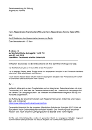 -2- Zu 2.: Die Auswertung nach fachgerecht/fachfremd erteiltem Unterricht an den öffentlichen all- gemein bildenden Schulen kann stets nur für einzelne Fächer/Fachgruppen erfolgen. Da- rum liegt eine Auswertung für die gesamten erteilten Unterrichtsstunden nach fachge- recht/fachfremd nicht vor. In der Anlage sind die im vergangenem Schuljahr wichtigsten Fächer/Fachgruppen (mind. 5 Prozent Anteil an den gesamten erteilten Unterrichtstunden in der einzelnen Schulart für Berlin insgesamt) für öffentliche Grundschulen, öffentliche Integrierte Sekundarschulen und für öffentliche Gymnasien aufgeschlüsselt. Berlin, den 02. August 2018 In Vertretung Mark Rackles Senatsverwaltung für Bildung, Jugend und Familie