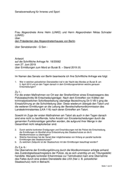 Zu 20.c.: In Anbetracht des Umstands, dass die abschließende Bewertung durch die Staatsanwaltschaft Berlin noch aussteht (siehe Antwort zu 20.a.), wurden zum jetzigen Zeitpunkt im Zusammenhang mit der in Rede stehenden Behauptung noch keine Personen vorgeladen. Berlin, den 09. Juli 2019 In Vertretung Torsten Akmann Senatsverwaltung für Inneres und Sport Seite 8 von 8