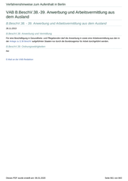 Verfahrenshinweise zum Aufenthalt in Berlin VAB B.BeschV.38.-39. Anwerbung und Arbeitsvermittlung aus dem Ausland B.BeschV.38. - 39. Anwerbung und Arbeitsvermittlung aus dem Ausland 26.11.2013 B.BeschV.38. Anwerbung und Vermittlung Für eine Beschäftigung in Gesundheits- und Pflegeberufen darf die Anwerbung in sowie eine Arbeitsvermittlung aus den in der Anlage zu § 38 BeschV aufgeführten Staaten nur durch die Bundesagentur für Arbeit durchgeführt werden. B.BeschV.39. Ordnungswidrigkeiten frei E-Mail an die VAB-Redaktion Dieses PDF wurde erstellt am: 06.01.2020 Seite 661 von 843