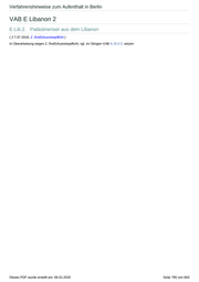 Verfahrenshinweise zum Aufenthalt in Berlin VAB E Libanon 2 E.Lib.2. Palästinenser aus dem Libanon ( 2 7.07.2018, 2. ÄndGAusreisepflicht ) In Überarbeitung wegen 2. ÄndGAusreisepflicht; vgl. im Übrigen VAB A.25.5.3. setzen Dieses PDF wurde erstellt am: 06.01.2020 Seite 795 von 843