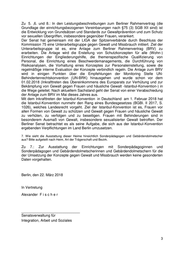 Zu 5. ,6. und 8.: In den Leistungsbeschreibungen zum Berliner Rahmenvertrag (die Grundlage der einrichtungsbezogenen Vereinbarungen nach §75 (3) SGB XII sind) ist die Entwicklung von Grundsätzen und Standards zur Gewaltprävention und zum Schutz vor sexuellen Übergriffen, insbesondere gegenüber Frauen, verankert. Der Senat hat gemeinsam mit der LIGA der Spitzenverbände durch Beschluss der Kommission 75 eine Unterarbeitsgruppe gegen Gewalt und Missbrauch initiiert. Ziel der Unterarbeitsgruppe ist es, eine Anlage zum Berliner Rahmenvertrag (BRV) zu erarbeiten. Die Anlage wird die Erstellung von Schutzkonzepten für alle (Wohn-) Einrichtungen der Eingliederungshilfe, die themenspezifische Qualifizierung von Personal, die Einrichtung eines Beschwerdemanagements, die Durchführung von Risikoanalysen, die Vorhaltung eines Konzeptes zur Personaleinstellung, sowie die regelmäßige interne Evaluation der Konzepte verbindlich regeln. Die Anlage zum BRV wird in einigen Punkten über die Empfehlungen der Monitoring Stelle UN- Behindertenrechtskonvention (UN-BRK) hinausgehen und wurde schon vor dem 01.02.2018 (Inkrafttreten des Übereinkommens des Europarats zur Verhütung und zur Bekämpfung von Gewalt gegen Frauen und häusliche Gewalt -Istanbul-Konvention-) in die Wege geleitet. Nach aktuellem Sachstand geht der Senat von einer Verabschiedung der Anlage zum BRV im Mai dieses Jahres aus. Mit dem Inkrafttreten der Istanbul-Konvention in Deutschland am 1. Februar 2018 hat die Istanbul-Konvention nunmehr den Rang eines Bundesgesetzes (BGBl. II 2017, S. 1026), welches Landesrecht vorgeht. Ziel der Istanbul-Konvention ist es, Frauen vor allen Formen von Gewalt zu schützen und Gewalt gegen Frauen und häusliche Gewalt zu verhüten, zu verfolgen und zu beseitigen. Frauen mit Behinderungen sind in besonderem Ausmaß von Gewalt, insbesondere sexualisierter Gewalt betroffen. Der Berliner Senat betrachtet es als seine Aufgabe, die sich aus der Istanbul-Konvention ergebenden Verpflichtungen im Land Berlin umzusetzen. 7. Wie sieht die Ausstattung dieser Heime hinsichtlich Sonderpädagogen und Gebärdendolmetscher aus? Bitte aufgeteilt nach Heim, Art der Trägerschaft und Bezirk. Zu 7.: Zur Ausstattung der Einrichtungen mit Sonderpädagoginnen und Sonderpädagogen und Gebärdendolmetscherinnen und Gebärdendolmetschern für die der Umsetzung der Konzepte gegen Gewalt und Missbrauch werden keine gesonderten Daten vorgehalten. Berlin, den 22. März 2018 In Vertretung Alexander F i s c h e r _____________________________ Senatsverwaltung für Integration, Arbeit und Soziales 3