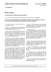 Drucksache 17 / 10 972 Kleine Anfrage 17. Wahlperiode Kleine Anfrage der Abgeordneten Claudia Hämmerling (GRÜNE) vom 17. September 2012 (Eingang beim Abgeordnetenhaus am 18. September 2012) und Antwort Wie teuer kommt der Baupfusch am Strandbad Wannsee die SteuerzahlerInnen zu stehen – wie seriös hat die Stiftung Denkmalschutz Berlin als Bauherr gearbeitet? Im Namen des Senats von Berlin beantworte ich Ihre Frage 3.: Treffen Informationen zu, dass die Stiftung Kleine Anfrage wie folgt: Denkmalschutz Berlin für Ihre Bauherrenleistung nicht die Haftung übernommen hat, sondern dass diese an die Frage 1: Wie schätzt der Senat die Qualität der Berliner Bäderbetriebe übergegangen ist? Denkmalsanierungsarbeiten durch die Stiftung Denkmal- schutz Berlin am Strandbad Wannsee ein? Antwort zu 3: Nein. Für die Restaurierungsarbeiten im Strandbad Wannsee Frage 2: Teilt der Senat die Auffassung eines nam- hat die Stiftung Denkmalschutz Berlin die Bauherren- haften Vertreters des Landesdenkmalrates, der nur fünf funktion wahrgenommen. Im Vertrag zur Sanierung des Jahre nach Abschluss der Sanierungsarbeiten angesichts Strandbades Wannsee zwischen den Berliner Bäder- von Rost, zerbröselndem Mauerwerk und zahlreicher Betrieben und der Stiftung Denkmalschutz Berlin wurde Risse im Fliesenboden von einer „Pinselsanierung“ und vereinbart, dass die Ansprüche der Stiftung gegenüber einem schweren Sanierungsfall spricht? dem von ihr beauftragten Generalunternehmer nach der Abnahme und Rückgabe des Strandbades Wannsee an die Antwort zu 1 und 2: Im Rahmen der Prüfung des Berliner Bäder-Betriebe abgetreten werden. Schlussverwendungsnachweises durch die damalige Se- natsverwaltung für Stadtentwicklung im Jahr 2008 wur- den lediglich Mängel hinsichtlich der Verschließbarkeit Frage 4.: Wer hat einer solchen Regelung zugestimmt der Türen, der Kittaushärtung in den Fenstern und der und wurden derartige Regelungen auch für andere Sa- Malerarbeiten an den Fenstern beanstandet. Diese wurden nierungsfälle der Stiftung Denkmalschutz Berlin, wie z.B. im Rahmen der Gewährleistung behoben. Weitere un- das Brandenburger Tor, das Charlottenburger Tor oder sachgemäße bauliche Ausführungen konnten zum dama- das Schoeler Schlösschen getroffen? ligen Zeitpunkt nicht festgestellt werden. Antwort zu 4: Im Hinblick auf das Strandbad Wann- Nach Auskunft der Berliner Bäder-Betriebe (BBB) see wurde ein Vertrag zwischen den Berliner Bäder- sind gegenwärtig Mängel aufgetreten, die sich an Betrieben und der Stiftung Denkmalschutz Berlin ge- blätternden Farbanstrichen, Rissen in den Fußboden- schlossen. belägen und an Feuchtigkeitsschäden im Wandelgang zeigen. Die Berliner Bäder-Betriebe haben die Schäden Die Regelungen für die anderen Sanierungsfälle dokumentiert und gegenüber der Stiftung Denkmalschutz wurden zwischen der Stiftung Denkmalschutz Berlin und Berlin und dem von dieser beauftragten Generalunter- dem Bezirksamt Mitte für das Brandenburger Tor und nehmer Hochtief angezeigt. Ob die Schäden im Zu- dem Bezirksamt Charlottenburg-Wilmersdorf für das sammenhang mit den Sanierungsarbeiten stehen, ist im Charlottenburger Tor und das Schoeler Schlösschen ge- Rahmen dieser Auseinandersetzung zu klären. Liegen die troffen. Ursachen in einer mangelhaften Bauausführung, sind die Mängel im Rahmen der Gewährleistung zu beheben. Frage 5.: Welche Behörde hat die Sanierungsarbeiten am Strandbad Wannsee überwacht und durch wen erfolgte die Bauabnahme? Die Drucksachen des Abgeordnetenhauses sind bei der Kulturbuch-Verlag GmbH zu beziehen. Hausanschrift: Sprosserweg 3, 12351 Berlin-Buckow · Postanschrift: Postfach 47 04 49, 12313 Berlin, Telefon: 6 61 84 84; Telefax: 6 61 78 28.