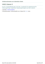 Verfahrenshinweise zum Aufenthalt in Berlin VAB E Libanon 2 E.Lib.2. Palästinenser aus dem Libanon ( 2 7.07.2018, 2. ÄndGAusreisepflicht ) In Überarbeitung wegen 2. ÄndGAusreisepflicht; vgl. im Übrigen VAB A.25.5.3. setzen Dieses PDF wurde erstellt am: 04.03.2020 Seite 828 von 877