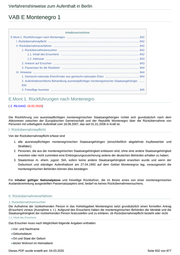 Verfahrenshinweise zum Aufenthalt in Berlin VAB E Montenegro 1 Inhaltsverzeichnis E.Mont.1. Rückführungen nach Montenegro ............................................................................................. 832 I. Rückübernahmepflicht ..................................................................................................................... 842 II. Rückübernahmeverfahren .............................................................................................................. 842 1. Rückübernahmeersuchen ....................................................................................................... 842 1.1. Inhalt des Ersuchens .................................................................................................... 842 1.2. Adressat ........................................................................................................................ 843 2. Antwort auf Ersuchen .............................................................................................................. 843 3. Passersatz für die Rückkehr ................................................................................................... 844 III. Hinweise ........................................................................................................................................ 844 1. Gemischt-nationale Ehen/Kinder aus gemischt-nationalen Ehen ........................................... 844 2. Aufenthaltsrechtliche Behandlung ausreisepflichtiger montenegrinischer Staatsangehöriger ...... 834 3. Freiwillige Ausreise ................................................................................................................. 845 E.Mont.1. Rückführungen nach Montenegro ( 2. RiLiUmG; 16.02.2016) Die Rückführung von ausreisepflichtigen montenegrinischen Staatsangehörigen richtet sich grundsätzlich nach dem Abkommen zwischen der Europäischen Gemeinschaft und der Republik Montenegro über die Rückübernahme von Personen mit unbefugtem Aufenthalt vom 18.09.2007, das seit 01.01.2008 in Kraft ist. I. Rückübernahmepflicht Von der Rückübernahmepflicht erfasst sind 1. alle ausreisepflichtigen montenegrinischen Staatsangehörigen (einschließlich abgelehnte Asylbewerber und Straftäter); 2. Personen, die aus der montenegrinischen Staatsangehörigkeit entlassen sind, ohne eine andere Staatsangehörigkeit erworben oder nicht zumindest eine Einbürgerungszusicherung seitens der deutschen Behörden erhalten zu haben; 3. Staatenlose m. ehem. jugosl. StA, sofern keine andere Staatsangehörigkeit erworben wurde und wenn der Geburtsort und ständiger Aufenthaltsort am 27.04.1992 auf dem Gebiet Montenegros lag, vorausgesetzt die montenegrinischen Behörden können dies bestätigen. Für Inhaber gültiger Nationalpässe und freiwillige Rückkehrer, die im Besitz eines von einer montenegrinischen Auslandsvertretung ausgestellten Passersatzpapiers sind, bedarf es keines Rückübernahmeersuchens. II. Rückübernahmeverfahren 1. Rückübernahmeersuchen Die Aufnahme der rückkehrenden Person in das Hoheitsgebiet Montenegros setzt grundsätzlich einen formellen Antrag (Ersuchen) voraus (Ausnahme s. I.). Aufgrund des Ersuchens haben die montenegrinischen Behörden die Identität und die Staatsangehörigkeit der rückkehrenden Person festzustellen und zu erklären, ob Rückübernahmepflicht besteht oder nicht. 1.1. Inhalt des Ersuchens Das Ersuchen muss nach Möglichkeit folgende Angaben enthalten: Vor- und Nachname Geburtsdatum Ort und Staat der Geburt letzter Wohnort im Heimatland Dieses PDF wurde erstellt am: 04.03.2020 Seite 832 von 877