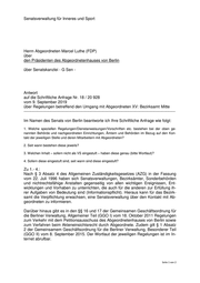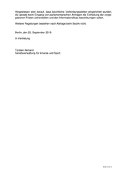 Senatsverwaltung für Inneres und Sport Herrn Abgeordneten Marcel Luthe (FDP) über den Präsidenten des Abgeordnetenhauses von Berlin über Senatskanzlei - G Sen - Antwort auf die Schriftliche Anfrage Nr. 18 / 20 928 vom 9. September 2019 über Regelungen betreffend den Umgang mit Abgeordneten XV: Bezirksamt Mitte ----------------------------------------------------------------------------------------------------------------- Im Namen des Senats von Berlin beantworte ich Ihre Schriftliche Anfrage wie folgt: 1. Welche speziellen Regelungen/Dienstanweisungen/Vorschriften etc. bestehen bei der oben ge- nannten Behörde und nachgeordneten Einrichtungen, Ämtern und Behörden im Bezug auf den Kon- takt der jeweiligen Stelle und deren Mitarbeitern mit Abgeordneten? 2. Seit wann bestehen diese jeweils? 3. Welchen Inhalt – sofern nicht als VS eingestuft – haben diese genau (bitte Wortlaut)? 4. Sofern diese eingestuft sind, seit wann sind diese eingestuft? Zu 1.- 4.: Nach § 3 Absatz 4 des Allgemeinen Zuständigkeitsgesetzes (AZG) in der Fassung vom 22. Juli 1996 haben sich Senatsverwaltungen, Bezirksämter, Sonderbehörden und nichtrechtsfähige Anstalten gegenseitig von allen wichtigen Ereignissen, Ent- wicklungen und Vorhaben zu unterrichten, die auch für die anderen zur Erfüllung ih- rer Aufgaben von Bedeutung sind (Informationspflicht). Hieraus kann für das Bezirk- samt die Verpflichtung erwachsen, eine Senatsverwaltung über den Kontakt mit Ab- geordneten zu informieren. Darüber hinaus gibt es in den §§ 16 und 17 der Gemeinsamen Geschäftsordnung für die Berliner Verwaltung, Allgemeiner Teil (GGO I) vom 18. Oktober 2011 Regelungen zum Verkehr mit dem Petitionsausschuss des Abgeordnetenhauses von Berlin sowie zum Verfahren beim Akteneinsichtsrecht durch Abgeordnete. Zudem gilt § 1 Absatz 2 der Gemeinsamem Geschäftsordnung für die Berliner Verwaltung, Besonderer Teil (GGO II) vom 8. September 2015. Der Wortlaut der jeweiligen Regelungen ist im In- ternet abrufbar. Seite 1 von 2