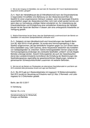 4 4. Wie ist der Umgang mit Härtefällen, die nach dem 30. November 2017 durch Spielhallenbetreiber eingereicht werden, geregelt? Zu 4.: Nach der Härtefallklausel des § 9 MindAbstUmsG kann die Erlaubnisbehörde in begründeten Einzelfällen eine Befreiung von den Abstandsvorschriften des SpielhG für einen angemessenen Zeitraum zulassen, wenn die beantragte Erlaubnis ausschließlich wegen der Abstandsvorschriften nicht mehr erteilt werden konnte und wenn dies zur Vermeidung unbilliger Härten erforderlich ist. Zur Unterstützung der Erlaubnisbehörden und Ermöglichung einer einheitlichen Anwendung der Härtefall- klausel hat der Senat den Bezirken in diesem Jahr eine umfangreiche Arbeitshilfe zur Verfügung gestellt. 5. Welche Erkenntnisse hat der Senat, dass das Spielhallenrecht zunehmend durch den Betrieb von Gaststätten (mit reduzierten Spielgerätebetrieb) unterlaufen wird? Zu 5.: Zeitgleich mit dem MindAbstUmsG sind Verschärfungen des SpielhG Berlin zum 06. April 2016 in Kraft getreten. So wurde eine Vermutungsregelung in das SpielhG aufgenommen, die das behördliche Vorgehen gegen nur zum Schein betrie- bene Gaststätten (sog. Café-Casinos), deren Hauptzweck tatsächlich das Aufstellen von Geldspielgeräten ist, erleichtert. Solche Scheingaststätten können aufgrund der Vermutungsregelung eindeutiger als unerlaubte Spielhallen „enttarnt“ und als illegale Betriebe untersagt werden. Sowohl Ordnungsämter als auch der Gewerbeaußen- dienst des Landeskriminalamts kontrollieren die Einhaltung der Bestimmungen des Spielhallengesetzes regelmäßig bei gewerberechtlichen Begehungen, teilweise in gemeinsamen Schwerpunktkontrollen zusammen mit weiteren Behörden. 6. Wie hat sich der Betrieb von Pferdewetten als (alternatives) Geschäftsmodell im Land Berlin seit 2015 entwickelt (bitte jahresweise Anzahl und Lage nach Bezirken)? Zu 6.: Bis 2015 gab es 4 Bestandsbetriebe mit insgesamt 18 Wettannahmestellen. Seit 2015 wurde ein Neuantrag auf Erlaubnis nach § 2 Abs. 2 Rennwett- und Lotte- riegesetz für 3 Örtlichkeiten gestellt. Berlin, den 05.12.2017 In Vertretung Henner B u n d e ......................................................... Senatsverwaltung für Wirtschaft, Energie und Betriebe