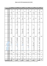 Anlage 2 zur KA 17/11791: Liegevermerke im LKA 2. Hj 2012 Juli 12 August 12 September 12 Oktober 12 November 12 Dezember 12 Verantwortliche Dienststelle Ergebnis Abteilung Ergebnis Abteilung Ergebnis Abteilung Ergebnis Abteilung Ergebnis Abteilung Ergebnis Abteilung LKA 112 4 0 4 0 0 8 LKA 113 LKA 116 LKA 117 LKA 121 0 7 0 1 3 0 LKA 122 0 118 21 371 0 151 15 262 20 126 12 405 LKA 124 0 0 0 0 0 0 LKA 125 54 50 46 72 79 67 LKA 131 30 235 73 132 1 295 LKA 132 25 50 21 30 16 19 LKA 133 5 8 7 12 7 4 LKA 211 0 1 0 0 0 0 LKA 214 86 11 8 10 9 8 LKA 221 1 0 0 0 0 0 LKA 222 0 0 0 0 42 0 LKA 224 0 0 2 0 0 1 LKA 225 14 0 0 0 1 0 LKA 227 0 0 0 0 0 0 LKA 231 8 1 4 8 6 1 LKA 232 1 0 5 0 0 1 442 117 305 213 202 213 LKA 233 43 12 7 26 9 21 LKA 234 90 22 103 41 53 47 LKA 235 80 64 90 41 22 21 LKA 236 119 0 81 78 60 103 LKA 243 0 0 0 1 0 0 LKA 251 0 0 0 0 0 3 LKA 255 0 0 0 0 0 0 LKA 256 0 6 5 4 0 7 LKA 257 0 0 0 4 0 0 LKA 311 0 0 0 0 0 0 LKA 313 0 4 0 0 0 0 LKA 314 0 0 0 0 0 0 LKA 315 0 0 0 0 0 0 LKA 321 61 32 18 77 55 56 LKA 322 12 0 0 49 0 44 LKA 323 2 53 54 64 0 2 LKA 324 1 7 4 5 4 6 LKA 325 1 7 0 2 4 0 LKA 326 13 1 0 0 0 1 LKA 327 0 0 0 2 0 2 LKA 328 0 0 0 2 0 0 LKA 331 428 690 262 374 170 74 LKA 332 84 437 0 617 531 369 LKA 333 12 0 0 0 0 0 LKA 334 0 18 0 8 3 0 LKA 335 766 1.131 405 455 133 10 LKA 336 133 179 236 151 163 57 LKA 337 LKA 338 LKA 341 3 9 6 9 8 8 LKA 342 1 0 0 3 1 0 LKA 343 0 0 0 56 0 0 LKA 344 1 12 0 0 10 0 LKA 345 0 5.858 0 9.258 0 5.474 0 7.253 0 4.639 0 4.515 LKA 346 70 71 0 106 2 37 LKA 347 21 2 0 2 2 0 LKA 351 592 855 608 685 578 380 LKA 352 322 239 636 494 418 745 LKA 353 282 149 191 108 237 21 LKA 354 0 1.026 486 660 329 159 LKA 355 105 45 30 73 18 32 LKA 356 0 0 0 0 0 0 LKA 361 0 0 0 2 0 0 LKA 362 419 419 218 395 324 228 LKA 362 Sonderkommission 0 0 0 0 0 18 LKA 363 798 840 268 510 156 402 LKA 364 171 110 387 283 102 298 LKA 365 208 44 55 72 198 43 LKA 366 309 696 1 0 0 0 LKA 371 0 348 367 243 289 19 LKA 372 115 297 326 267 63 46 LKA 373 636 439 442 664 558 506 LKA 374 103 446 274 507 98 552 LKA 375 6 4 0 0 22 0 LKA 376 0 284 0 100 32 234 LKA 377 121 239 112 101 36 122 LKA 378 62 125 88 107 95 44 LKA 413 0 0 0 0 0 0 LKA 422 0 0 90 0 0 0 LKA 423 0 4 0 0 0 0 LKA 424 0 0 1 0 0 0 LKA 425 0 5 6 9 0 7 3 83 123 25 0 9 LKA 426 0 3 0 0 0 0 LKA 427 2 0 23 0 0 2 LKA 433 1 2 0 0 0 0 LKA 444 0 0 0 0 0 0 LKA 455 0 69 3 16 0 0 LKA 521 0 0 0 0 0 7 LKA 522 0 0 0 0 0 12 LKA 523 0 0 0 0 0 0 LKA 531 36 179 0 276 108 0 LKA 533 27 0 0 0 0 0 77 198 16 290 119 39 LKA 534 0 17 0 0 0 0 LKA 535 0 0 0 0 0 0 LKA 541 0 1 4 1 7 5 LKA 542 14 0 12 13 2 13 LKA 544 0 1 0 0 2 2 LKA 711 274 215 108 160 324 217 307 240 114 194 339 267 LKA 713 33 25 6 34 15 50 Gesamtergebnis 6.805 6.805 10.267 10.267 6.183 6.183 8.237 8.237 5.425 5.425 5.448 5.448