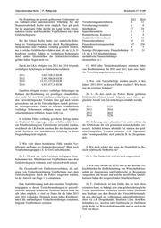 Abgeordnetenhaus Berlin – 17. Wahlperiode Drucksache 17 / 15 449 Die Ermittlung der jeweils geflossenen Geldsumme ist 2013 2014 im Rahmen einer automatisierten Erhebung bei der Versicherungsunternehmen 6 12 Staatsanwaltschaft Berlin nicht möglich. Dies gilt auch Versicherungsvermittler 1 0 für die angefragte Höhe der für das Land Berlin verein- Spielbanken 17 24 nahmten Gelder und Anzahl der Verpflichteten nach dem Immobilienmakler 1 2 Geldwäschegesetz. Kammerberufe, Kammern 1 4 Andere Gewerbetreibende 8 15 Bei der Polizei Berlin findet eine statistische Erhe- Finanzunternehmen 10 15 bung zu Vermögenswerten, die durch Beschlagnahme, Finanzdienstleistungsinstitute 147 256 Sicherstellung oder Pfändung vorläufig gesichert werden, Behörden 6 5 nur in solchen Geldwäscheverfahren statt, die im LKA 31 Sonstige (Privatpersonen, Finanzbehörden 35 31 bearbeitet werden. Zahlen zu vorläufigen Sicherungen i.S. des § 31b Abgabenordnung, durch andere Dienststellen, die Geldwäscheverfahren ausländische Finanzermittlungs- geführt haben, liegen nicht vor. dienststellen etc.) Durch das LKA erfolgten von 2011 bis 2014 folgende Ca. 80% aller Verdachtsmeldungen stammen daher vorläufigen Sicherungen in Geldwäscheverfahren: von Kreditinstituten, für 2011 und 2012 kann eine ähnli- che Verteilung angenommen werden. 2011: 3.028.528,53 EUR 2012: 2.988.500,00 EUR 2013: 13.374.131,00 EUR 3. Wie viele Tatverdächtige wurden jeweils in den 2014: 4.934.477,30 EUR Jahren 2011-2014 in diesen Fällen ermittelt? Wie hoch war der jeweilige Schaden? Daneben erfolgten weitere vorläufige Sicherungen im Rahmen der Bearbeitung der jeweiligen Grunddelikte, Zu 3.: Zu den durch die Polizei Berlin geführten also nicht bei den Geldwäschetatverdächtigen, sondern Geldwäscheverfahren konnte folgende nach Jahren ge- den Tatverdächtigen der Vortaten (also ggf. auch bereits gliederte Anzahl von Tatverdächtigen ermittelt werden: gewaschene und an die Tatverdächtigen zurück geflosse- ne Vermögenswerte). Daten, zu welchen Grunddelikten 2011: 2121 vorläufige Sicherungen erfolgten, wenn auch Geldwä- 2012: 2016 scheermittlungen erfolgten, liegen nicht vor. 2013: 2647 2014: 3226 In welchen Fällen vorläufig gesicherte Beträge später im Strafurteil für eingezogen oder verfallen erklärt bzw. Die Erhebung eines „Schadens“ ist nicht erfolgt, da zur Schadloshaltung von Tatverletzten verwendet wurden, die Geldwäsche für sich genommen keinen Schaden ver- wird durch das LKA nicht erhoben. Bei der Staatsanwalt- ursacht. Schäden können allenfalls bei einigen der geld- schaft Berlin ist eine automatisierte Erhebung zu dieser wäschetauglichen Vortaten entstehen (z.B. Eigentums- Fragestellung nicht möglich. oder Vermögensdelikte, nicht jedoch z.B. bei Drogenhan- del). 2. Wie viele dieser bearbeiteten Fälle betrafen Ver- pflichtete im Sinne des Geldwäschegesetzes? (Bitte nach 4. Wie hoch schätzt der Senat das Dunkelfeld im Be- Verpflichtetengruppen i.S. §2 GwG aufschlüsseln) reich Geldwäsche für Berlin ein? Zu 2.: Ob und wie viele Verfahren sich gegen Mitar- Zu 4.: Das Dunkelfeld wird als hoch eingeschätzt. beiterinnen bzw. Mitarbeiter von Verpflichteten nach dem Geldwäschegesetz richteten, wird statistisch nicht erfasst. 5. Wie viele Stellen (in VZÄ) sind in den Berliner Po- Die Gesamtzahl von Geldwäscheverfahren, die auf- lizeibehörden für die Bekämpfung von Wirtschaftskrimi- grund von Verdachtsmeldungen Verpflichteter nach dem nalität im Allgemeinen und Geldwäsche im Besonderen Geldwäschegesetz durch die Polizei eingeleitet wurden, vorgesehen und besetzt und welche spezifischen Qualifi- ist der Antwort zur Frage 1 zu entnehmen. kationen haben die entsprechenden MitarbeiterInnen? Eine Aufschlüsselung nach den einzelnen Verpflichte- Zu 5.: Geldwäsche ist kein Delikt, das für sich allein tengruppen zu diesen Verdachtsmeldungen ist polizeili- existieren kann, es bedingt stets eine geldwäschetaugliche cherseits aufgrund technischer Probleme derzeit nicht für Vortat, deren Erlöse gewaschen werden sollen. Dies kön- alle Jahre möglich, es sind nur Daten für die Jahre 2013 nen Straftaten aus dem Bereich der Wirtschaftskriminali- und 2014 vorhanden. Demnach waren neben Kreditinsti- tät sein, aber auch aus vollkommen anderen Deliktsberei- tuten, die am häufigsten Verdachtsmeldungen erstatteten, chen wie z.B. Drogenhandel, Straftaten i.Z.m. dem Rot- folgende Verpflichteten vertreten: lichtmilieu u.ä., insofern zählt Geldwäsche per Definition nicht direkt zur Wirtschaftskriminalität und ist auch nicht Teil von dieser. 2