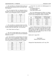 Drucksache 17 / 14 350 Schriftliche Anfrage 17. Wahlperiode Schriftliche Anfrage des Abgeordneten Benedikt Lux (GRÜNE) vom 07. August 2014 (Eingang beim Abgeordnetenhaus am 08. August 2014) und Antwort Mord und Totschlag: Offene Fälle und Aufklärungsquote Im Namen des Senats von Berlin beantworte ich Ihre so dass eine Trendaussage zur Entwicklung der Fälle des Schriftliche Anfrage wie folgt: vollendeten Totschlags mit einer nicht abschließenden Bearbeitung nicht getroffen werden kann. Vorbemerkung: Die nachfolgend tabellarisch darge- stellten Daten basieren auf der Erfassung in der Polizeili- chen Kriminalstatistik (PKS). Da für unterjährige Daten 3. Wie viele versuchte Totschläge gab es in den Jah- keine statistische Verarbeitung erfolgt, wird in den fol- ren 2009 - 2014 jeweils und wie viele dieser Fälle sind genden Antworten ausschließlich der Zeitraum 2009 bis nicht abschließend behandelt, also offen? 2013 betrachtet. Zu 3.: Die Anzahl der versuchten Totschläge in den 1. Wie viele Fälle von vollendetem Totschlag wurden Jahren 2009 bis 2013 ist der nachfolgenden Tabelle zu von den Berliner Polizeibehörden jeweils in den Jahren entnehmen. Diese Angaben beziehen sich ausschließlich 2009 - 2014 registriert? auf die in dem entsprechenden Jahr abgeschlossenen Vorgänge. Zu 1.: Die Anzahl der Fälle von vollendetem Tot- schlag in den Jahren seit 2009, die von der Polizei Berlin Jahr Anzahl registriert wurden, ist der nachfolgenden Tabelle zu ent- 2009 65 nehmen: 2010 59 2011 68 Jahr Anzahl 2012 68 2009 32 2013 42 2010 26 2011 18 4. Wie hoch war jeweils die Aufklärungsquote bei 2012 24 Fällen 2013 25 a) von vollendetem Totschlag und b) von versuchtem Totschlag in den Jahren 2009 bis 2014? 2. Wie viele Fälle von vollendetem Totschlag sind in Berlin nicht abschließend behandelt, also offen und wie Zu 4.: Die Aufklärungsquote (AQ) bei Fällen von hat sich diese Zahl in den Jahren 2009 - 2014 entwickelt? vollendetem Totschlag und von versuchtem Totschlag in den Jahren 2009 bis 2013 ist der nachfolgenden Tabelle Zu 2.: Eine Recherche im Polizeiliches Landessystem zu entnehmen: zur Information, Kommunikation und Sachbearbeitung Aufklärungsquote Aufklärungsquote (POLIKS) ergab, dass für insgesamt 41 Vorgänge zu Jahr vollendeter Tot- versuchter Tot- Mord und Totschlag (vollendet und versucht), welche im schlag schlag Zeitraum 2009 bis 2013 in das System eingegeben wur- 2009 87,5 % 90,8 % den, bisher noch kein Abschluss erfolgte. Damit sind bzw. waren sie bisher auch nicht in der PKS erfasst. Da eine 2010 88,5 % 83,1 % Konkretisierung des Tatbestandes (Abgrenzung von Mord 2011 88,9 % 83,8 % und Totschlag) im Verlauf der Ermittlungen erfolgt, wird 2012 100,0 % 89,7 % vor Vorgangsabschluss keine Unterscheidung getroffen, 2013 88,0 % 90,5 % Die Drucksachen des Abgeordnetenhauses sind bei der Kulturbuch-Verlag GmbH zu beziehen. Hausanschrift: Sprosserweg 3, 12351 Berlin-Buckow · Postanschrift: Postfach 47 04 49, 12313 Berlin, Telefon: 6 61 84 84; Telefax: 6 61 78 28.